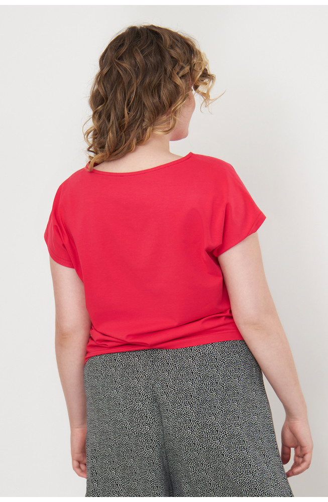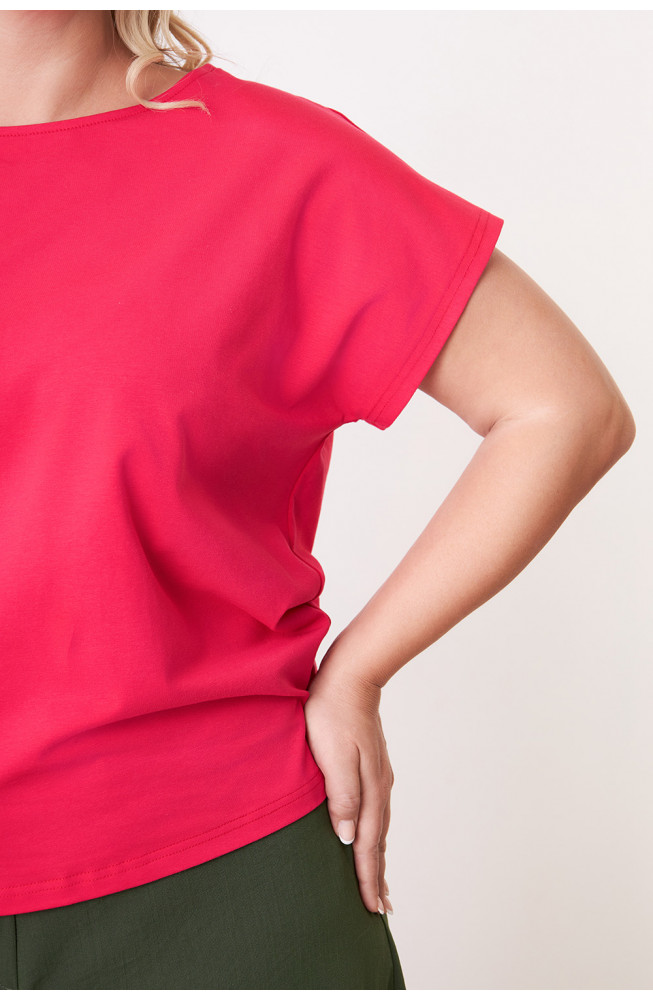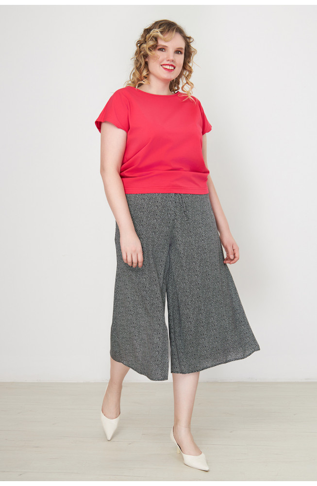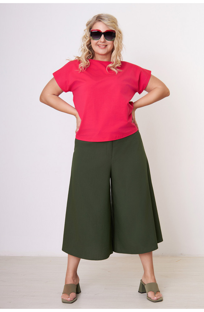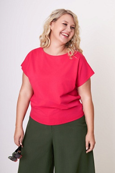 Описание: Джемпер из хлопкового трикотажа свободного силуэта "oversize" с небольшим заужение к низу, со спущенной линией плеча переходящей в короткий рукав и округлым вырезом горловины.