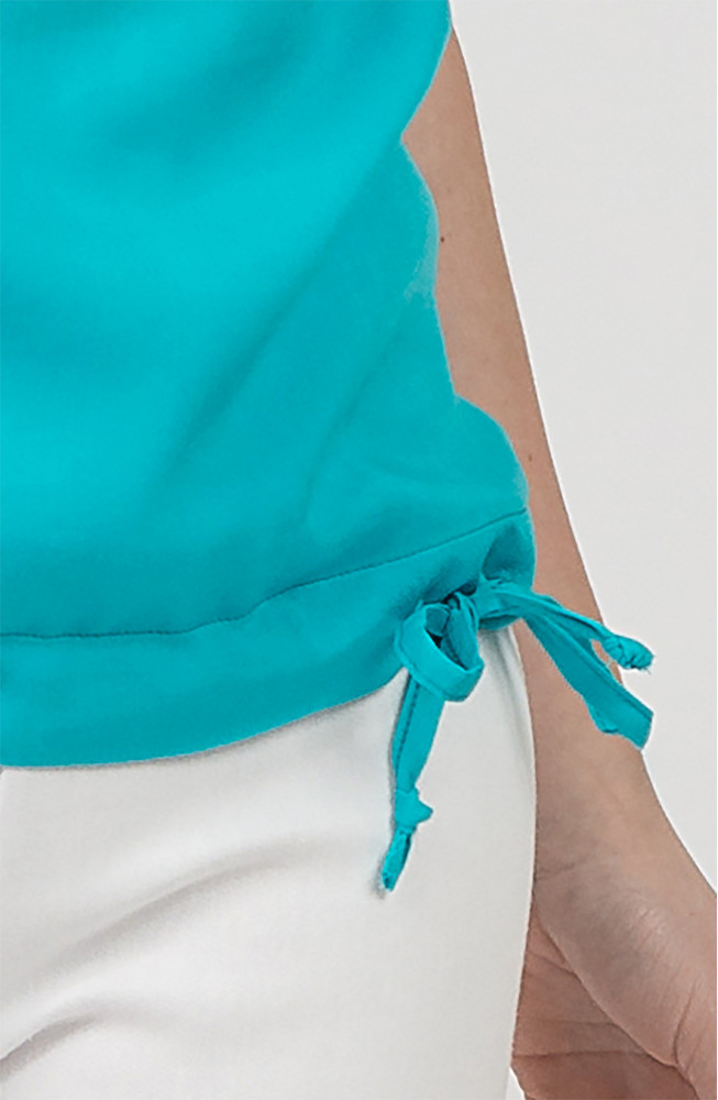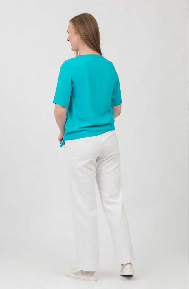 Описание: Джемпер из вискозной ткани "штапель" прямого силуэта на кулиске с завязкой по низу и рукавами до локтя.