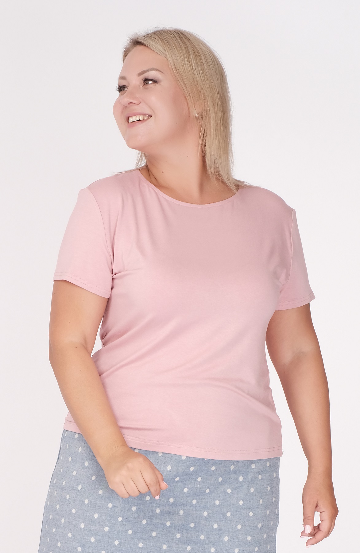 Описание: Джемпер из тонкого вискозного трикотажа полуприлегающего силуэта с округлым вырезом горловины и короткими рукавами.