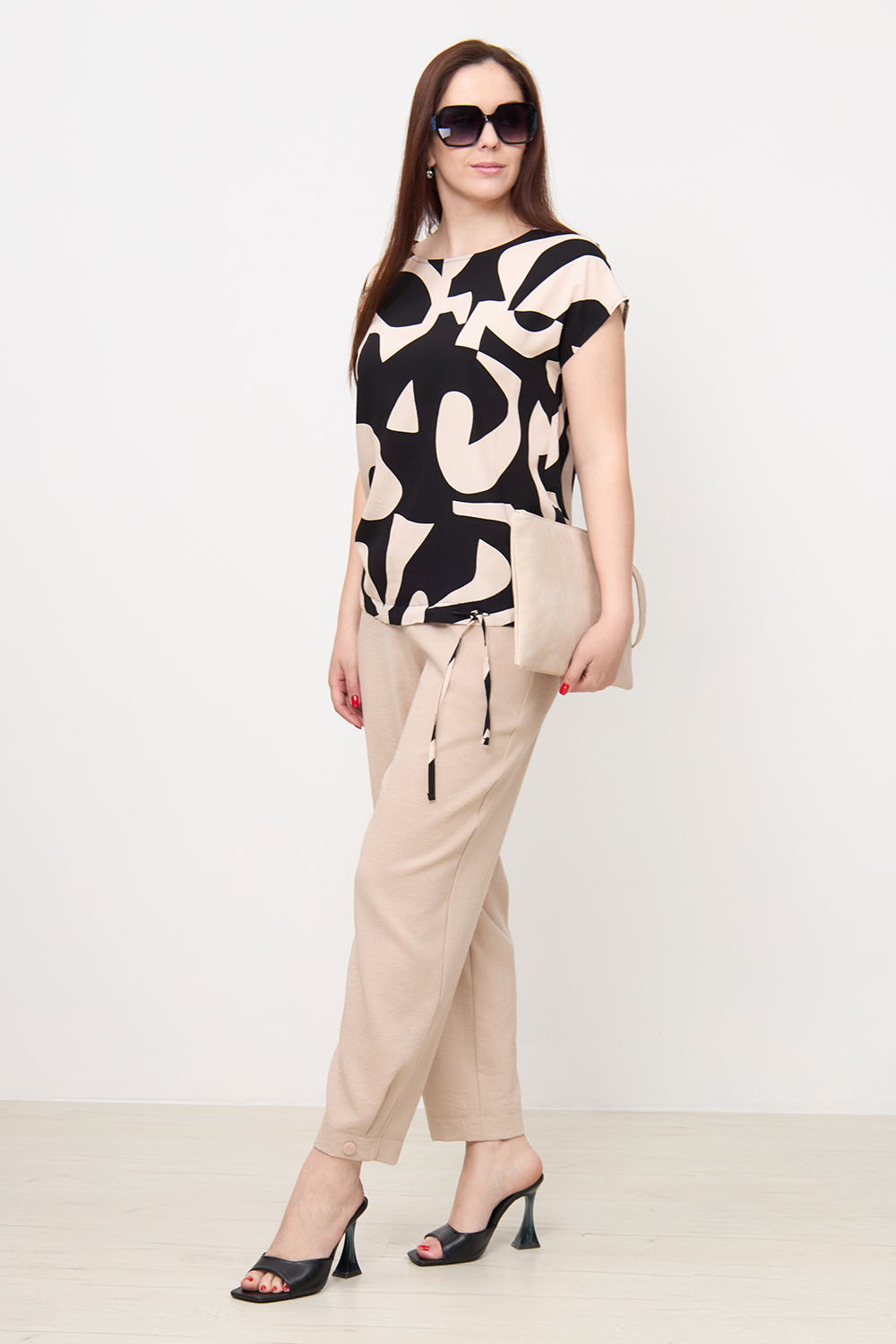 Блузка Незнакомка 03.9507.2361 штапель ((48) 164-96-104, бежево-черный)