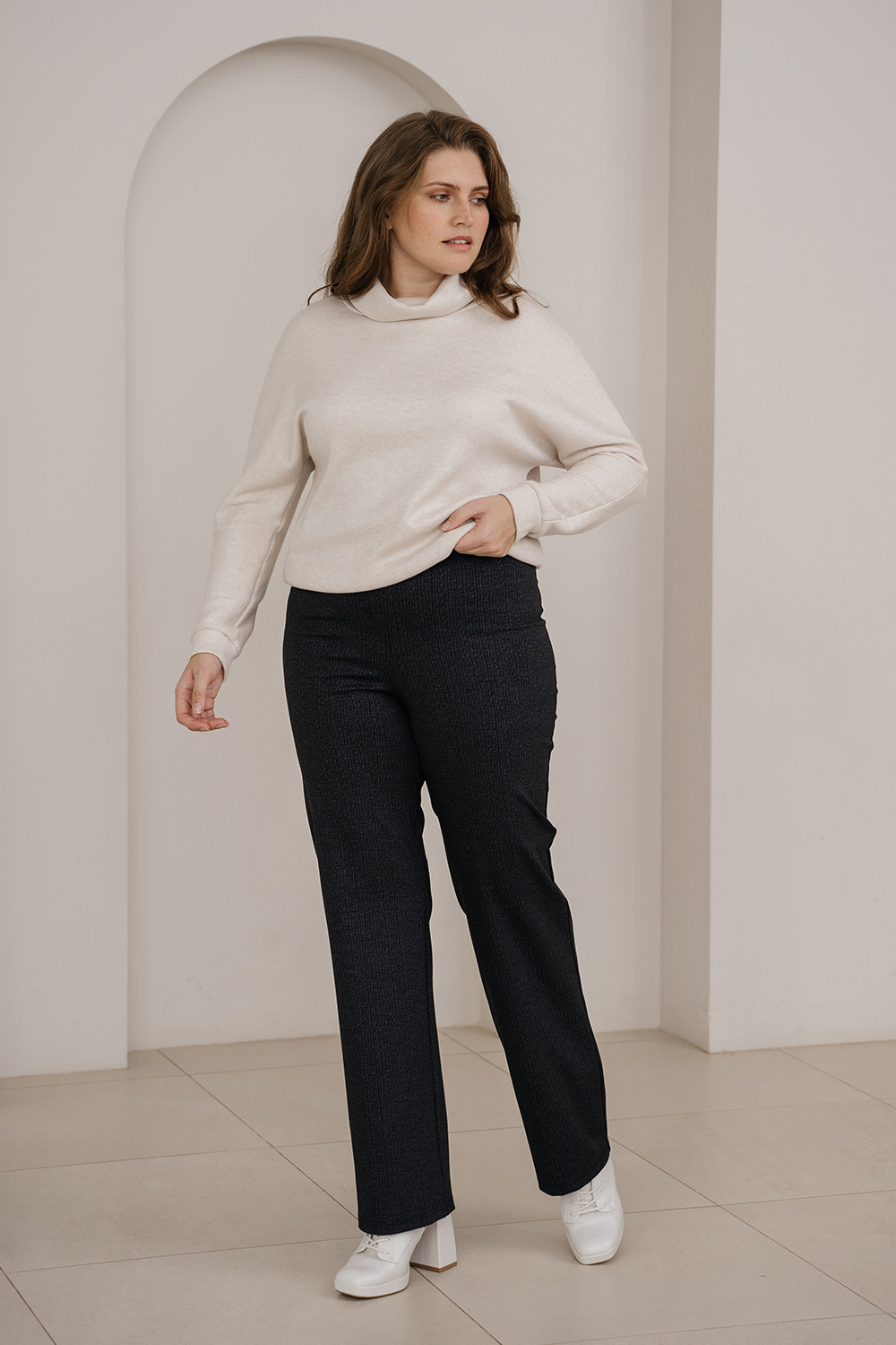 Описание: Брюки из плотного трикотажа-нейлон прямого фасона на резинке по талии, без застежки.