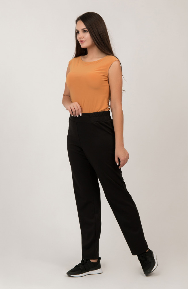 Описание: Брюки из плотного трикотажа джерси прямого фасона на поясе с резинкой без застежки.