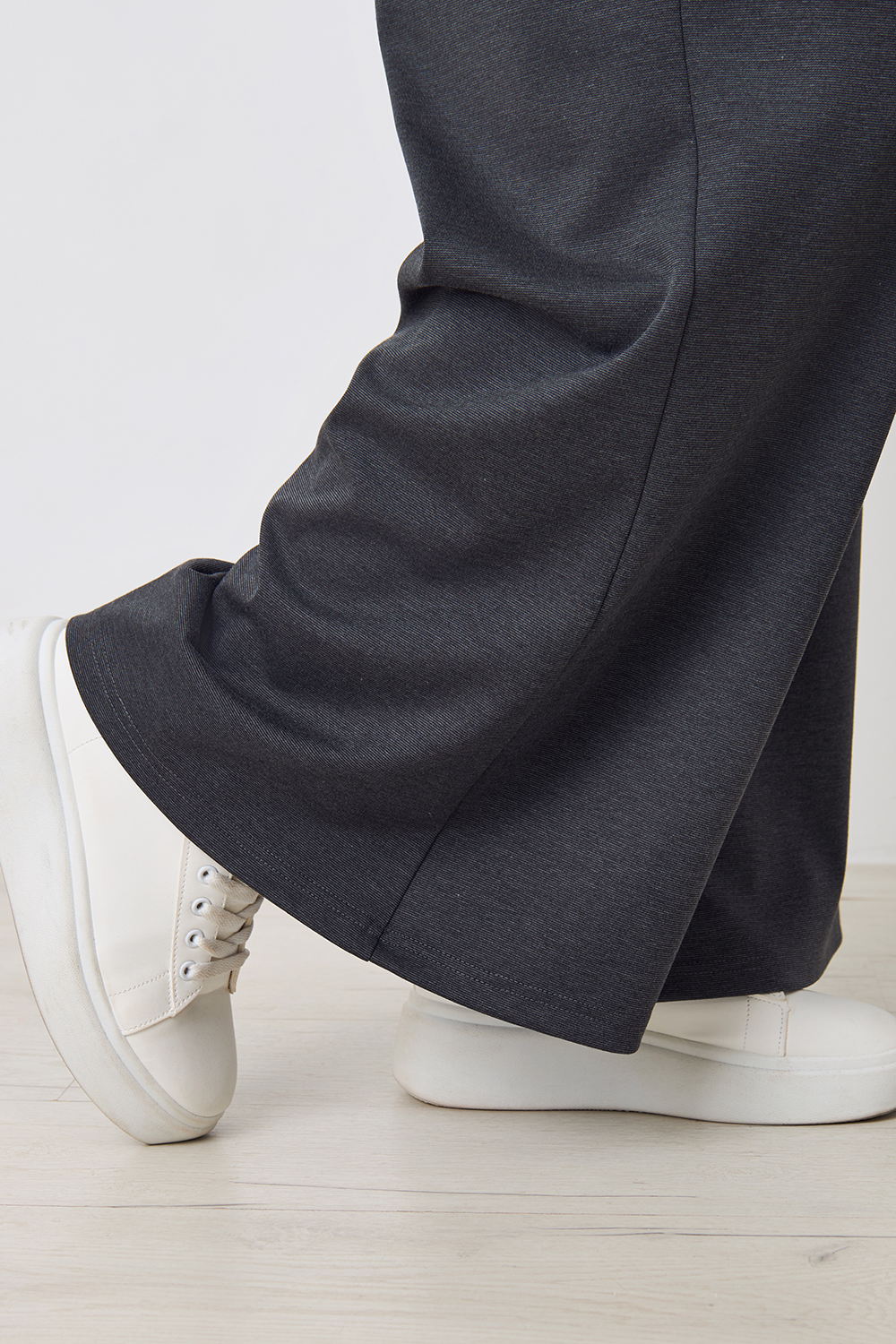 Описание: Женские широкие трикотажные брюки, расклешенные от бедра, из плотного трикотажа на поясе с широкой комфортной резинкой, без застежки подойдут и стройным девушкам и женщинам plus size, высоким и не высоким.