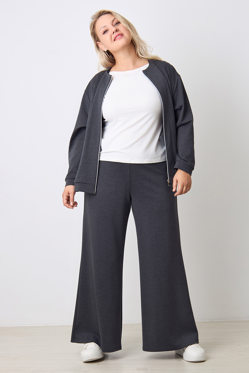Свободные брюки клеш большого размера из плотного трикотажа качественно сшиты, неприхотливы в уходе. После стирки сохраняют форму.