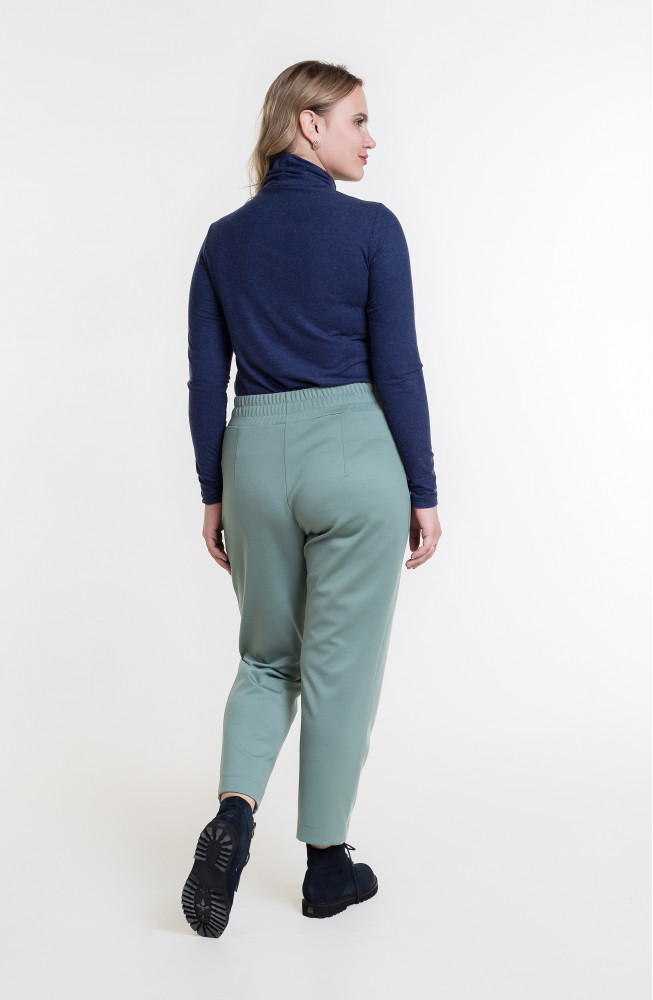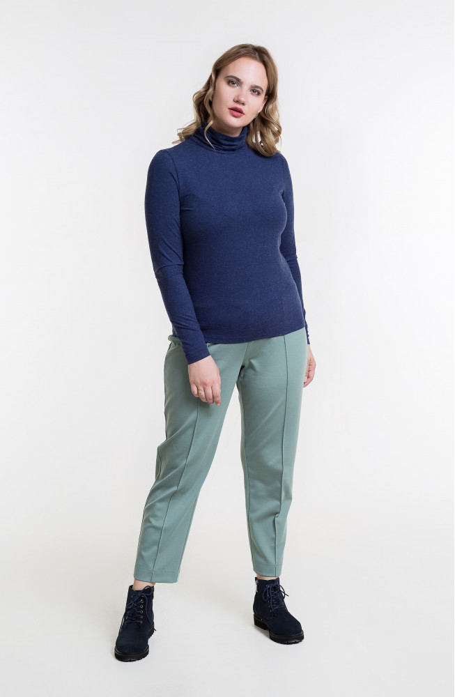 Описание: Джемпер-бадлон приталенного силуэта из мягкого вискозного трикотажа средней плотности с длинными рукавами и воротником-стойкой.