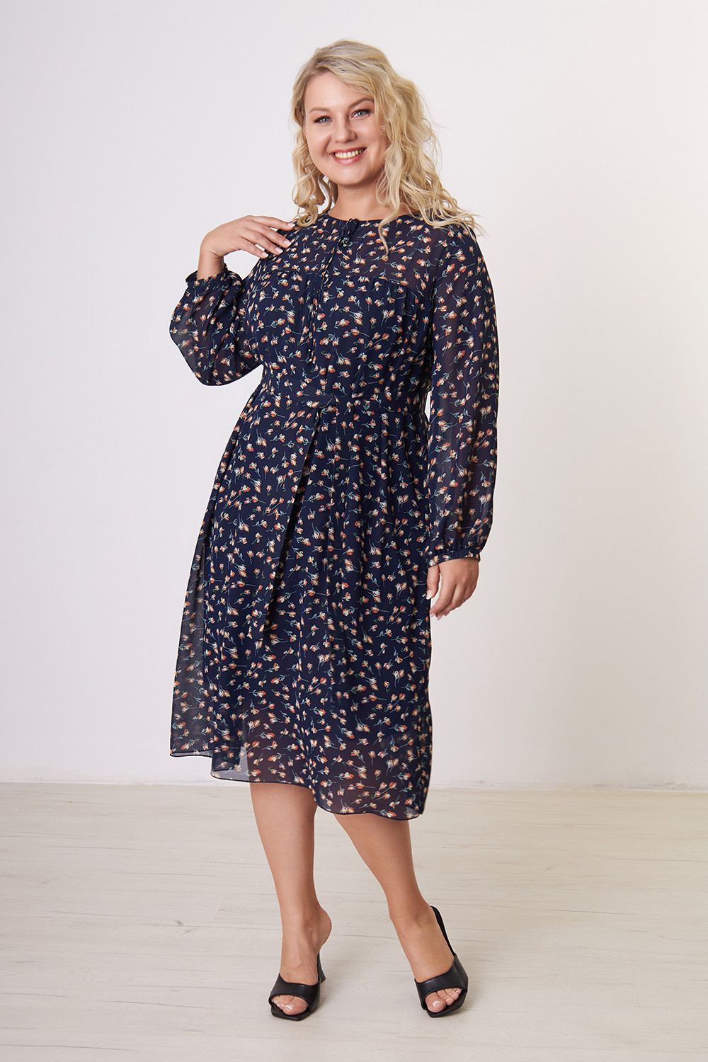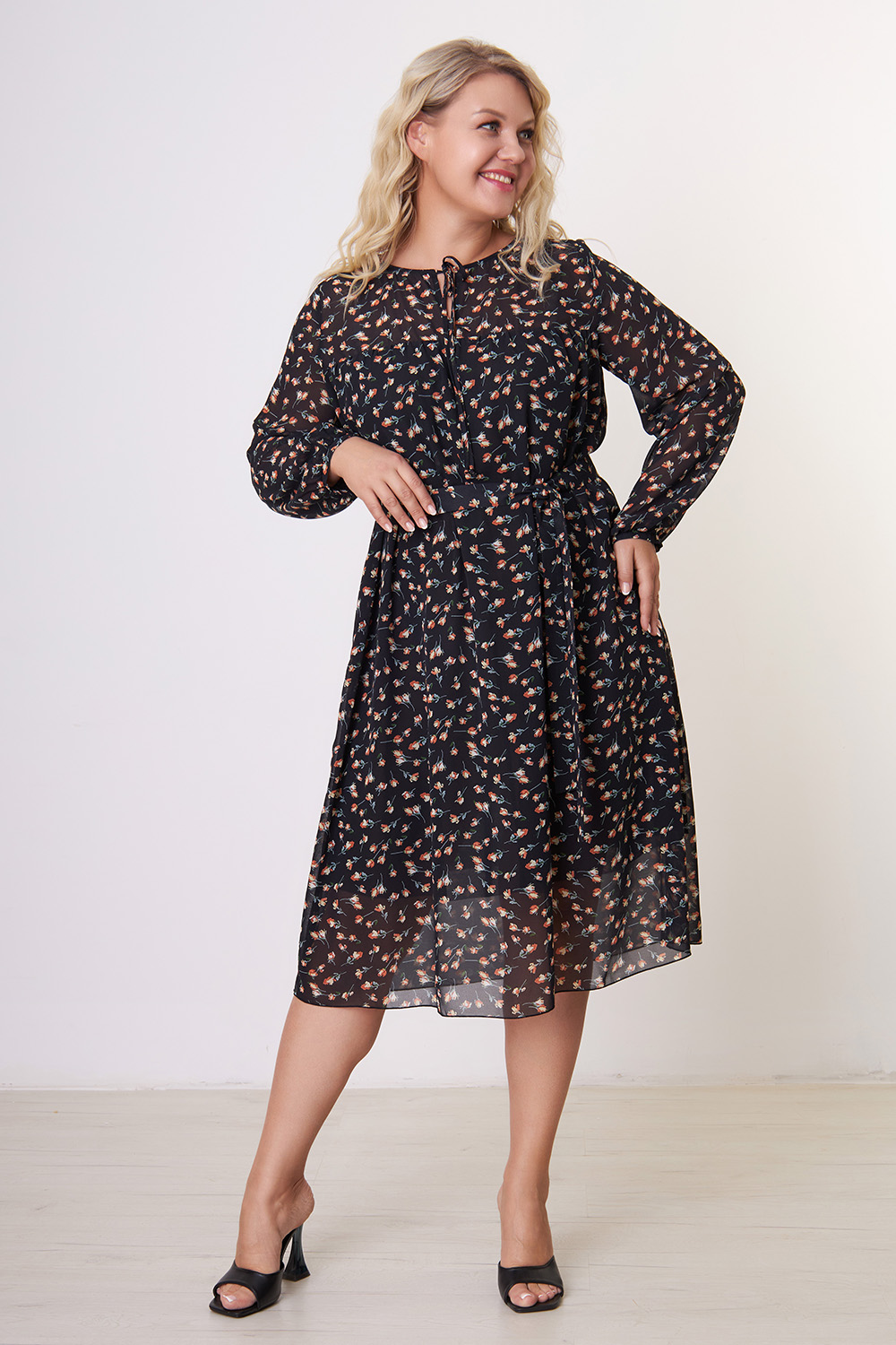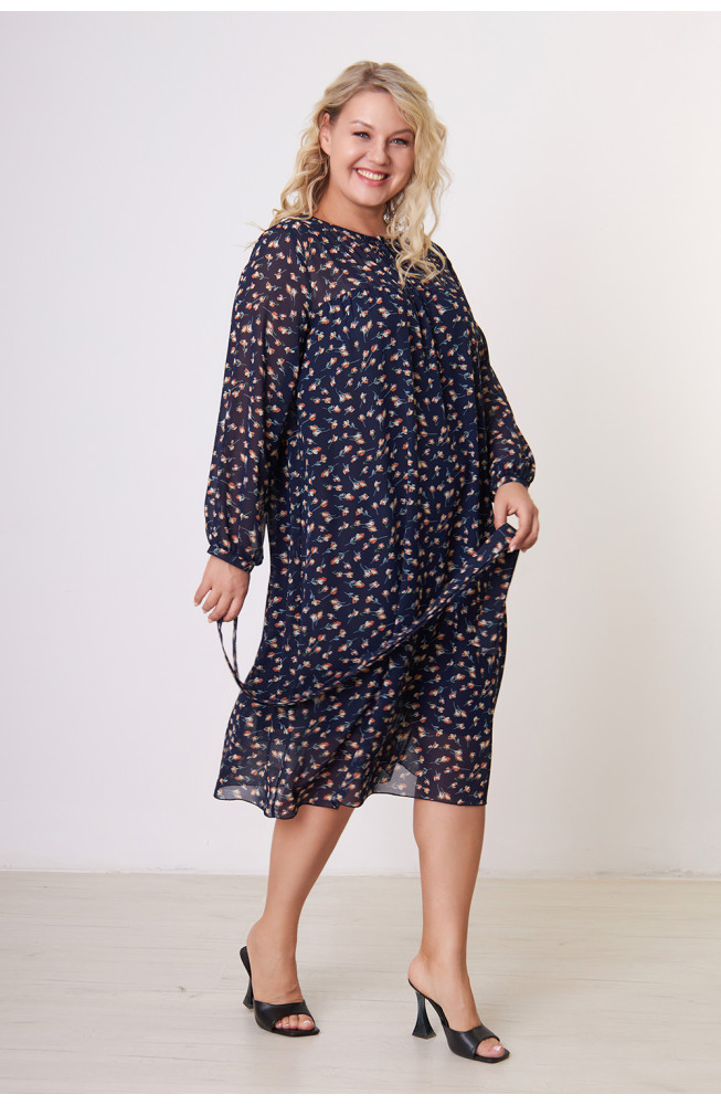 Описание: Воздушное платье на кокетке, выполнено из шифона с подкладкой-сеткой. Ткань легкая, струящиеся, мягко ниспадает по фигуре, тем самым маскирует лишние объемы.