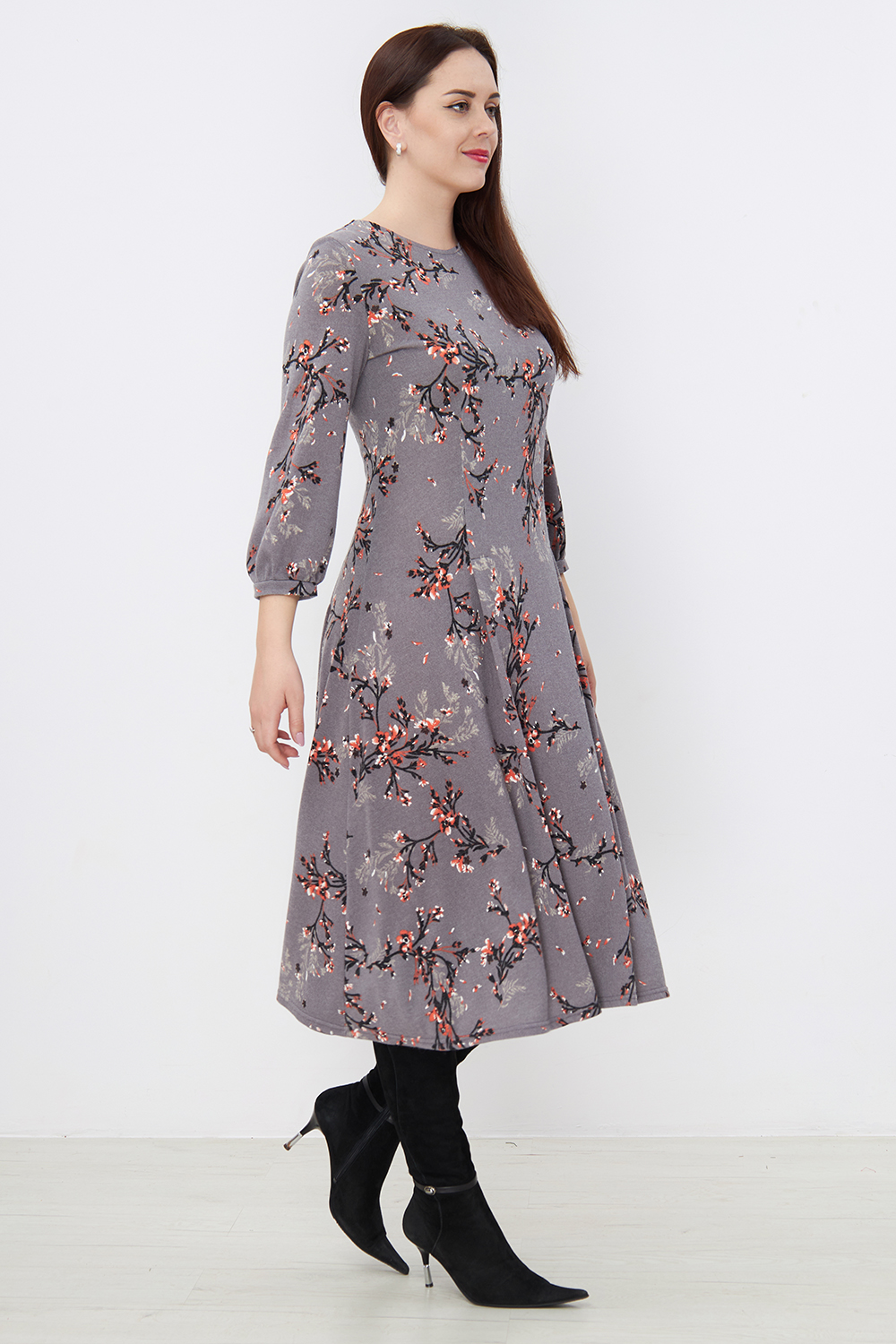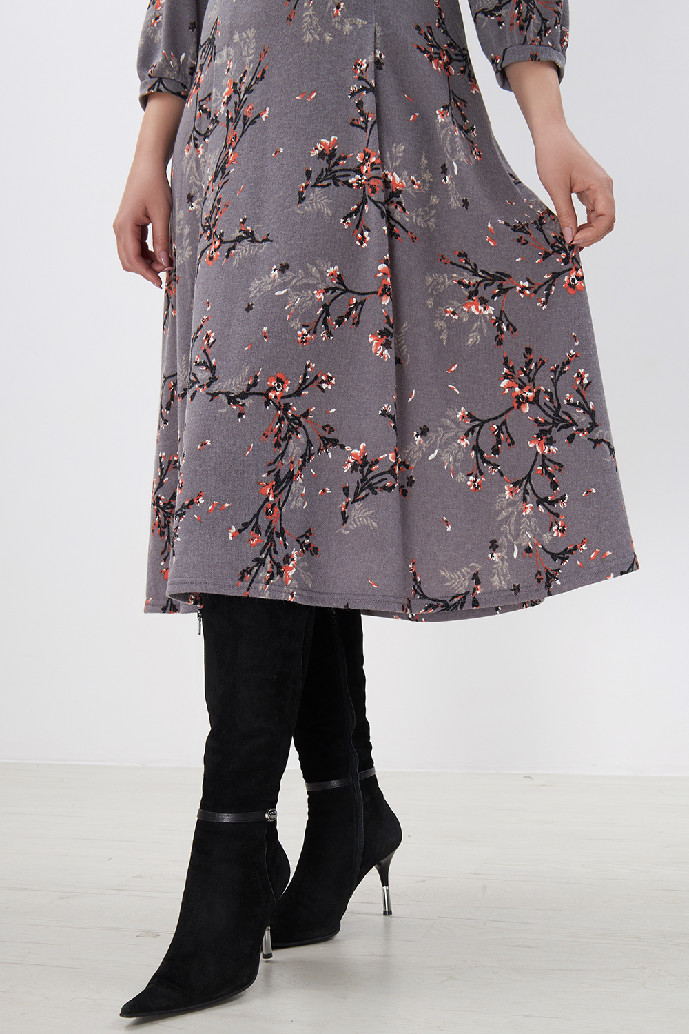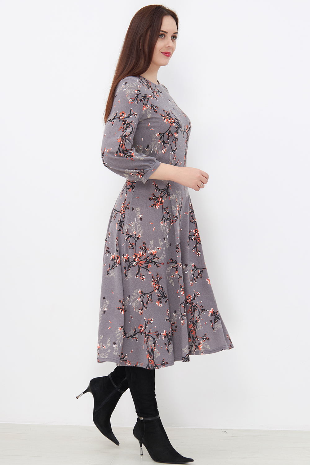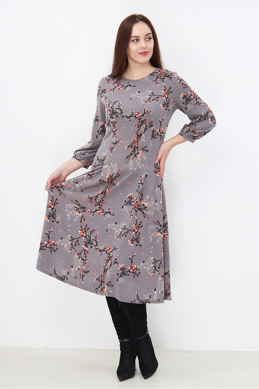 Платье Незнакомка 00.8482.2803 трикотаж-ангора ((44) 164-88-96, цветы на сером)
