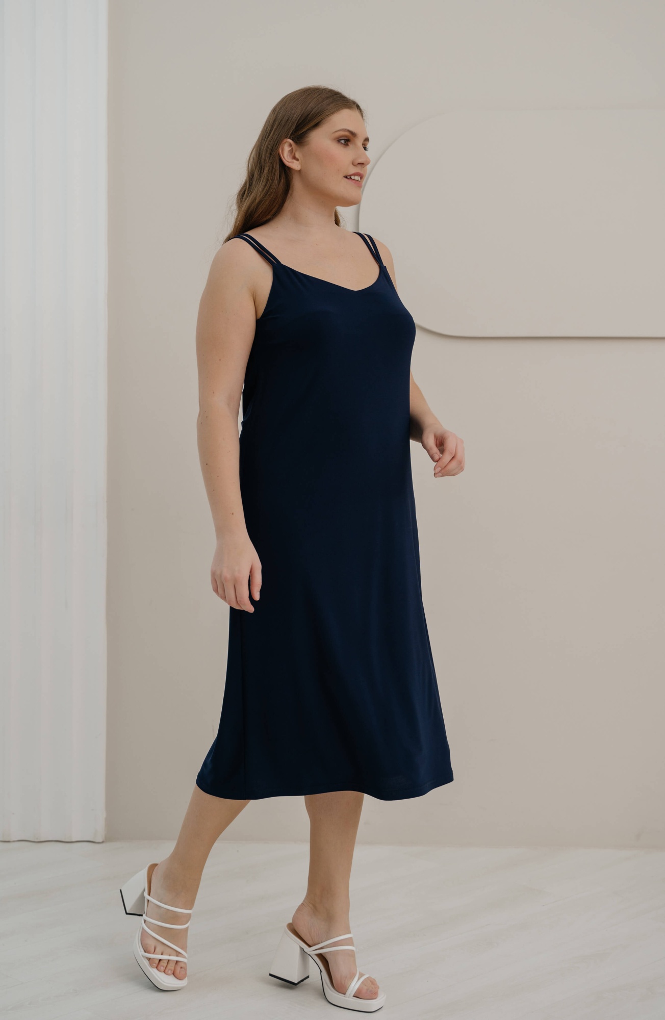 Описание: Сарафан из трикотажа "масло" А-образного силуэта на двойных тонких бретелях с V-образным вырезом декольте и длиной ниже колена.