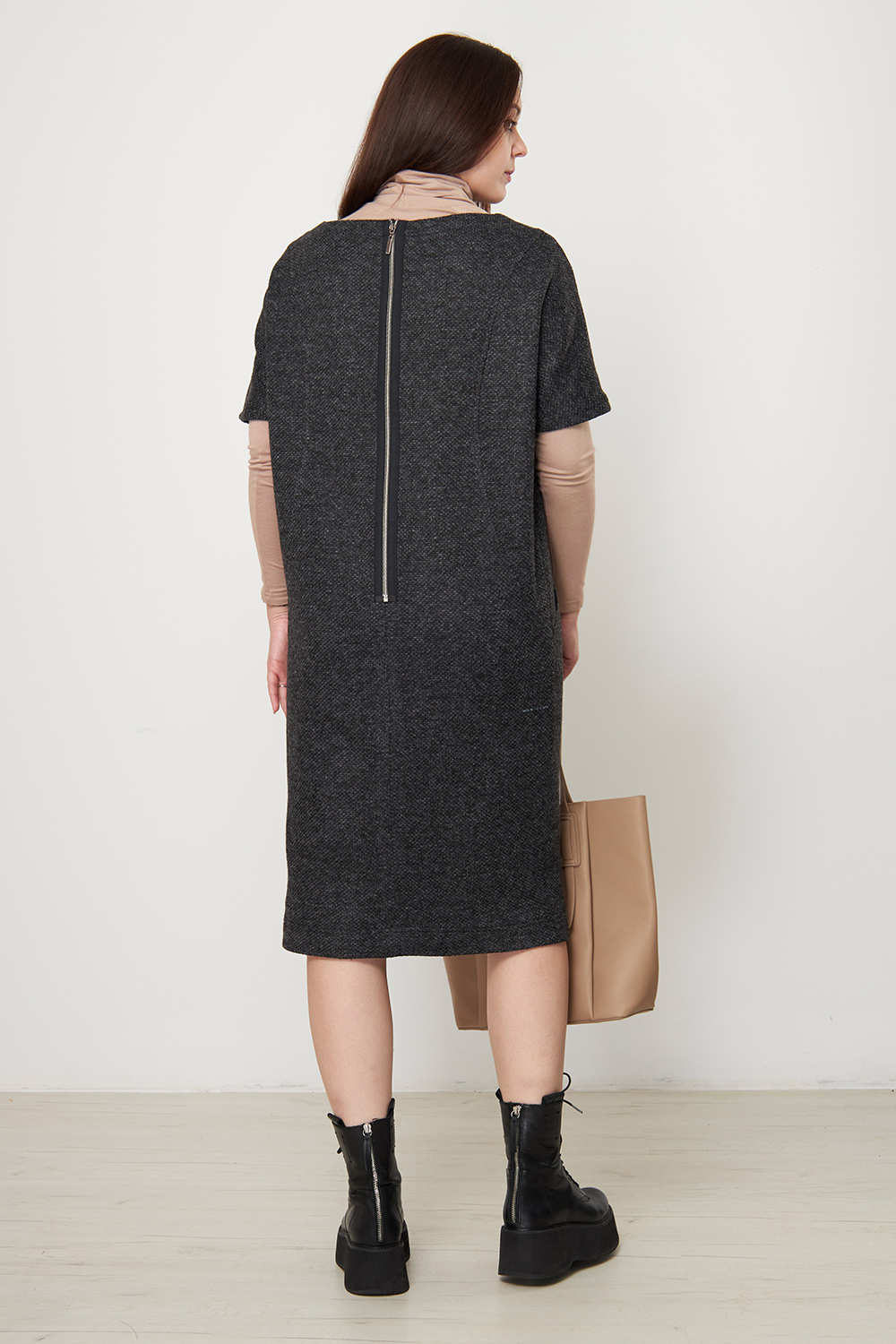 Описание: Сарафан из плотного трикотажа свободного силуэта oversize со спущенным плечом и карманами рельефных швах. По спинке сарафан украшает длинная металлическая молния. Застежка-молния ложная - не расстегивается.
