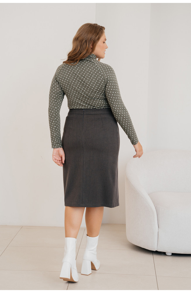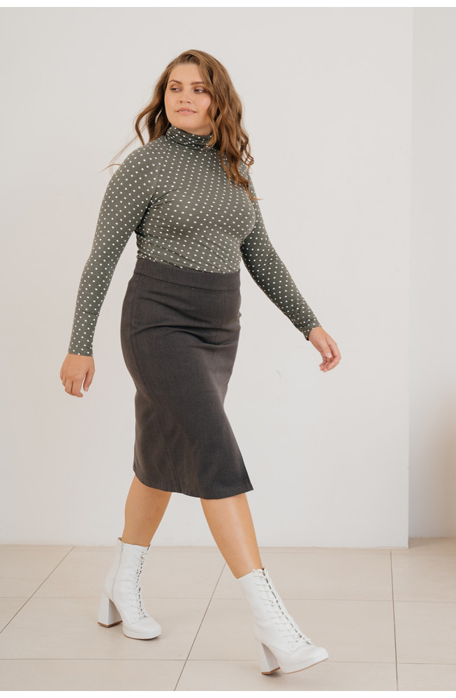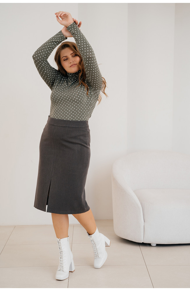 Описание: Юбка-карандаш из костюмной ткани на поясе с застежкой-молнией сбоку и с высоким разрезом спереди. Юбка длиной ниже колена.