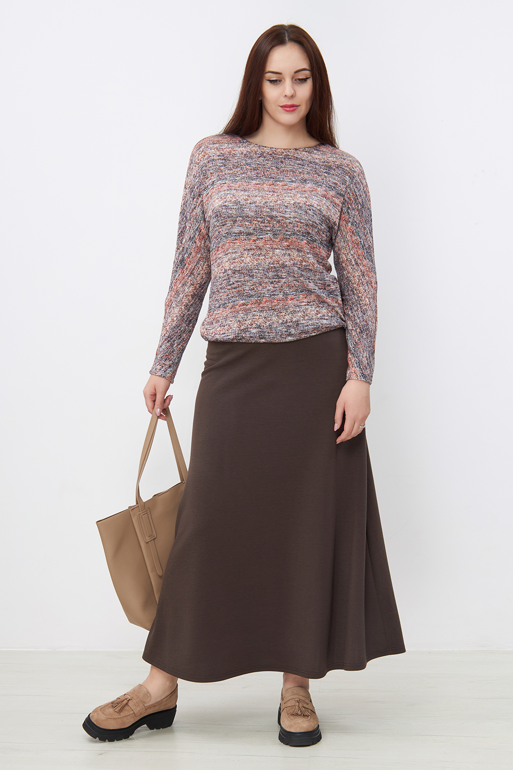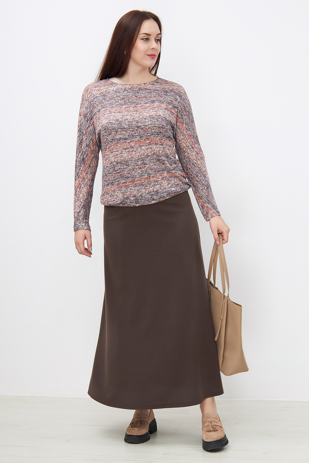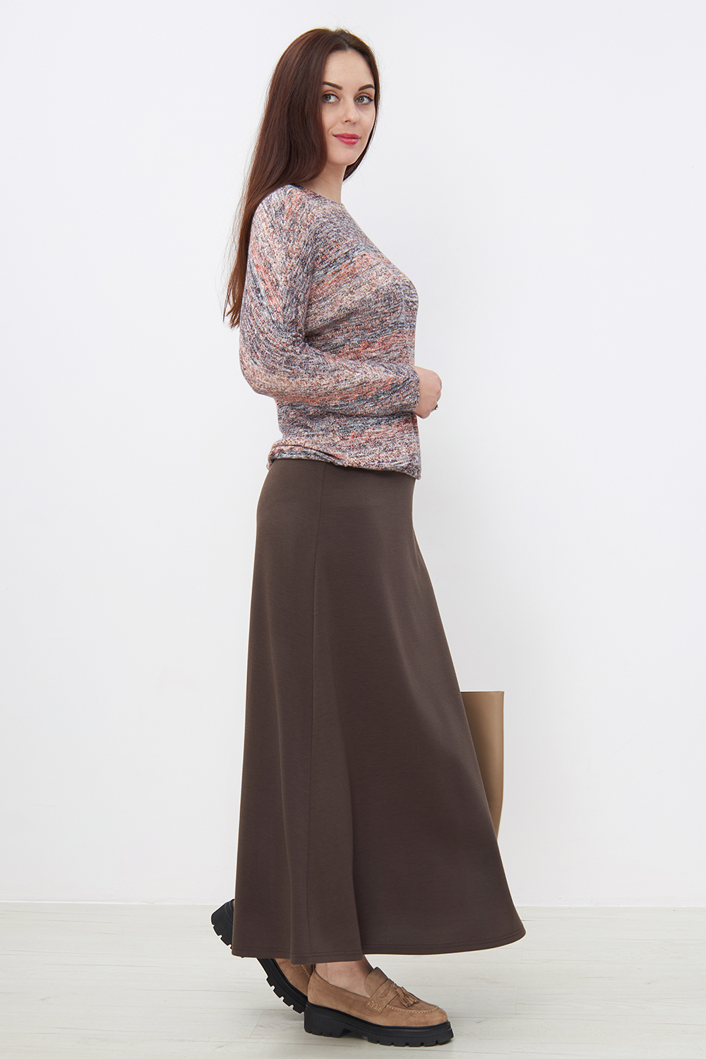 Описание: Юбка женская длинная, силуэта трапеция, умеренно расклешенная от бедра, без молнии, с высокой посадкой, на резинке. Летящая юбка в пол, однотонная (черная, серая меланж или синяя), из плотного струящегося трикотажного полотна джерси, прекрасно подойдет для осени и зимы. Конструкция изделия обеспечивает комфортную посадку и подойдет ко всем типам фигуры, в том числе большим размерам 60 62. Эта юбка а силуэта, теплая позволит составить интересные образы для жизни в городе, для работы в офисе, для учебы в школе и университете, для прогулок, для отдыха, в сочетании с джемперами, свитерами, бомберами, блузками и кардиганами. Длинная юбка в пол подходит всем женщинам традиционных религиозных верований России - христианкам и мусульманкам.