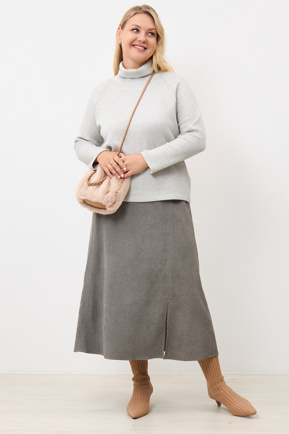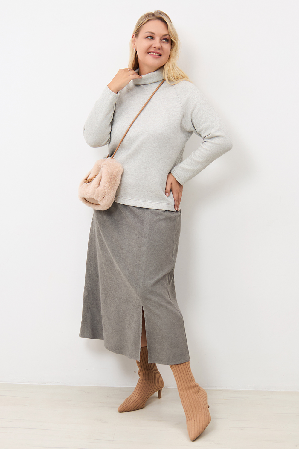 Описание: Юбка-шестиклинка из вельветовой ткани с разрезом по ноге и резинкой по талии. Имеет узкую форму от талии до середины бедер, расширяется вниз клиньями и формирует вид трапеции.