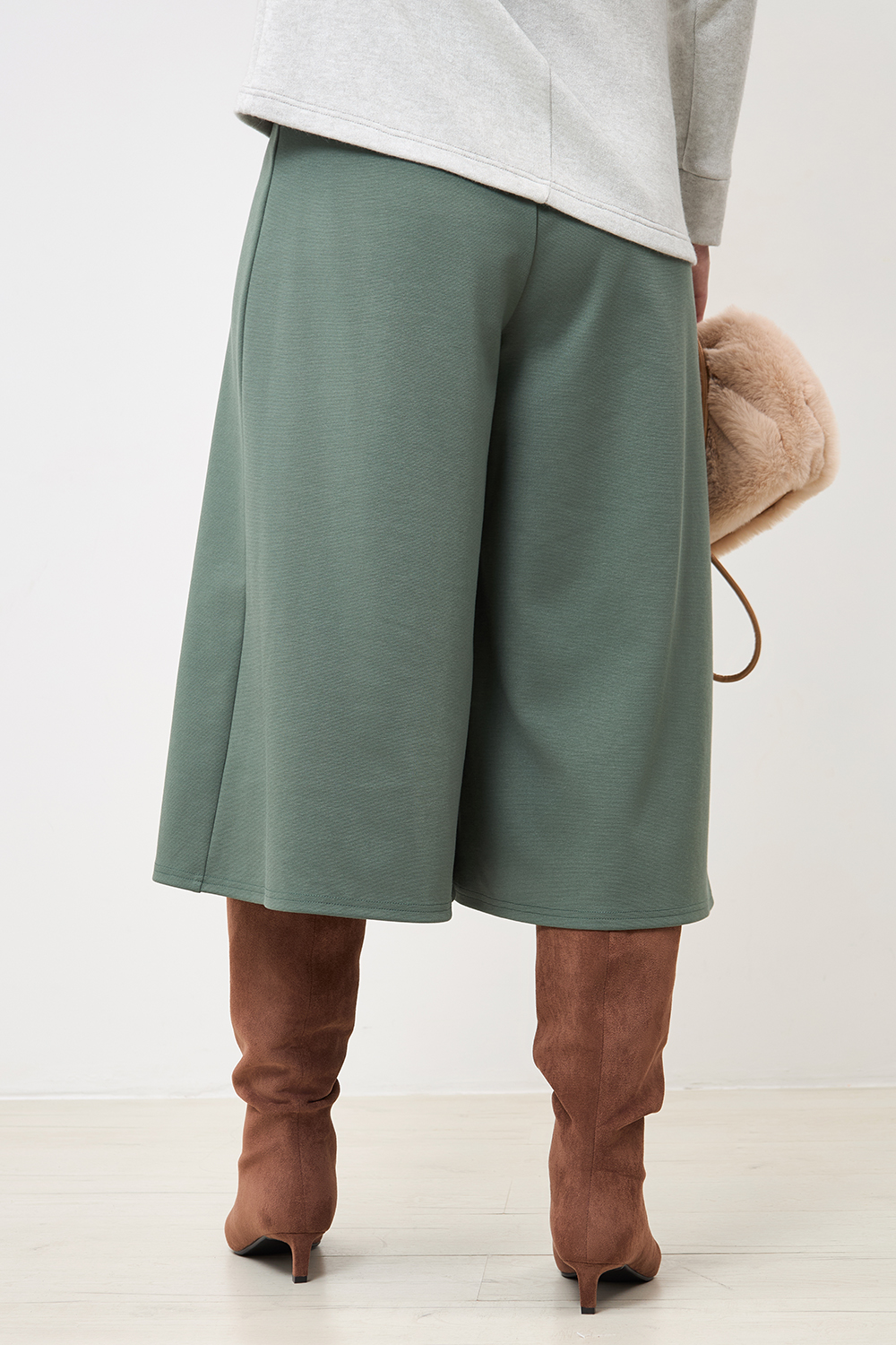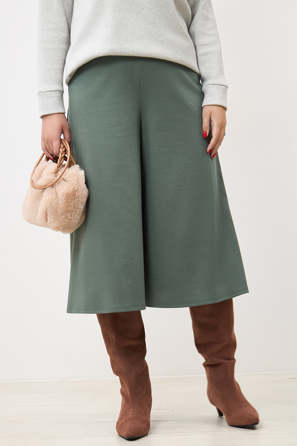 Описание: Брюки-кюлоты из плотного трикотажа джерси на резинке по талии, длиной ниже колена.