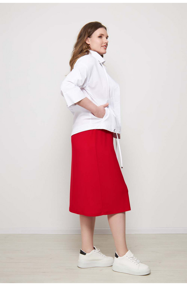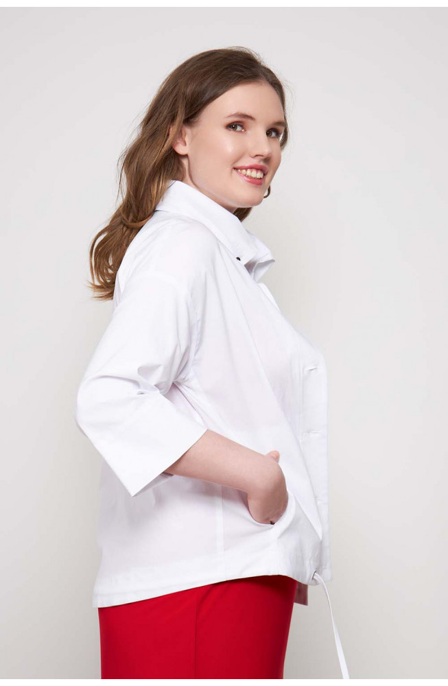 Описание: Жакет из хлопковой ткани-стрейч "бенгалин" силуэта oversize на застежке на пуговицы с воротником с кулисой со шнурком, с кулисой по низу, широкими рукавами длиной 7/8 на спущенном плече и с карманами в рельефных швах.