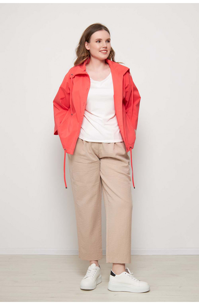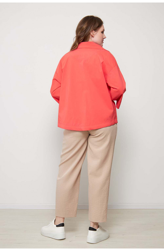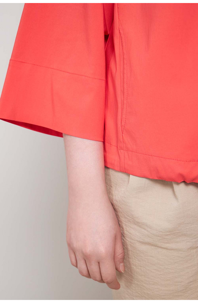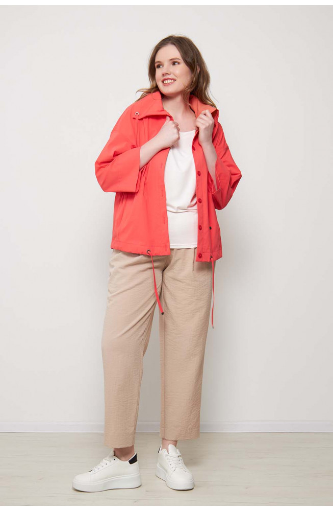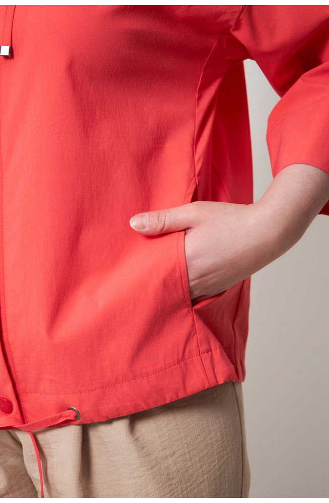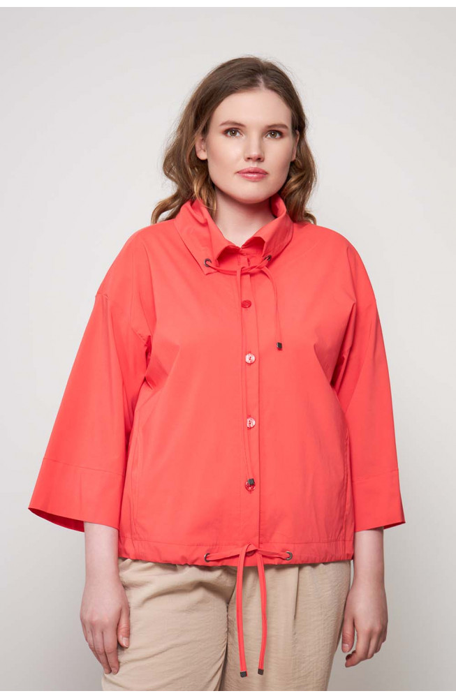 Описание: Жакет из хлопковой ткани-стрейч "бенгалин" силуэта oversize на застежке на пуговицы с воротником с кулисой со шнурком, с кулисой по низу, широкими рукавами длиной 7/8 на спущенном плече и с карманами в рельефных швах.