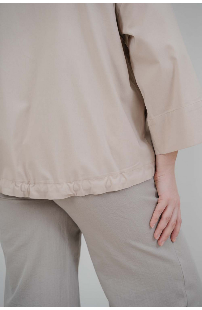 Описание: Жакет из хлопковой ткани-стрейч "бенгалин" силуэта oversize на застежке на пуговицы с воротником с кулисой со шнурком, с кулисой по низу, широкими рукавами длиной 7/8 на спущенном плече и с карманами в рельефных швах.