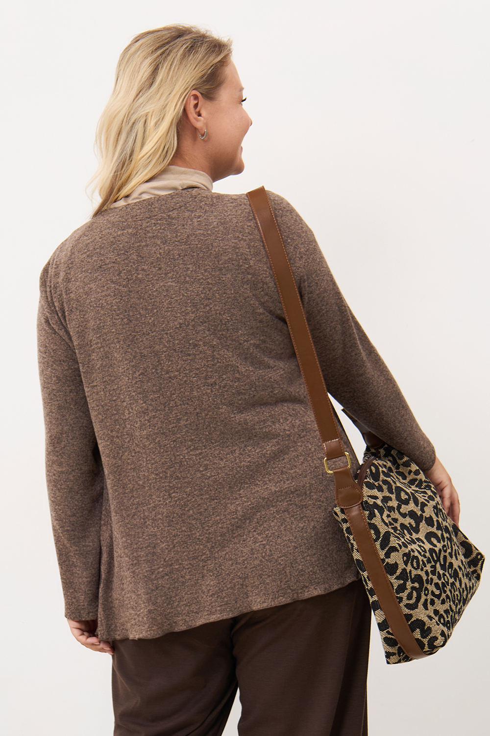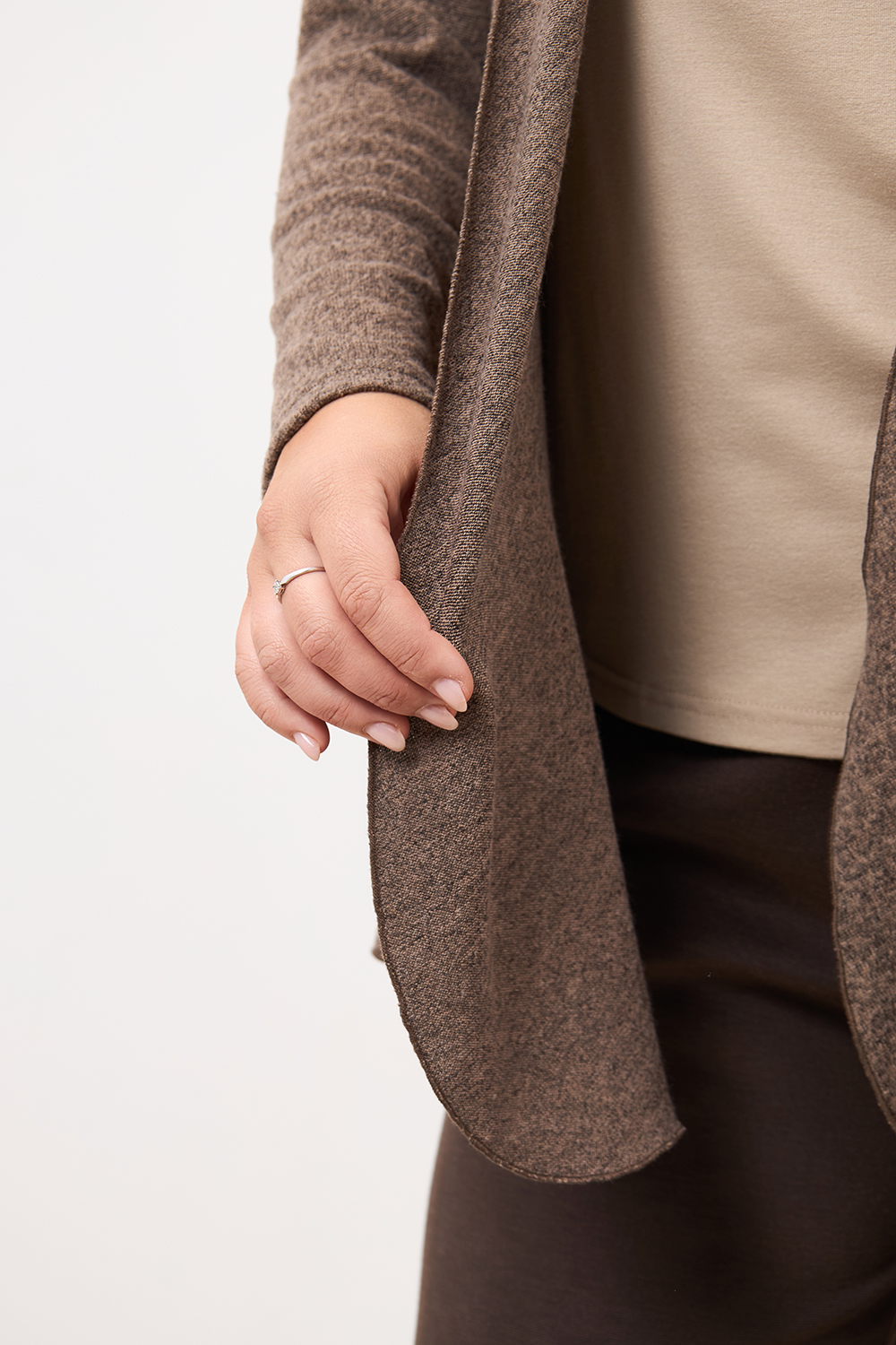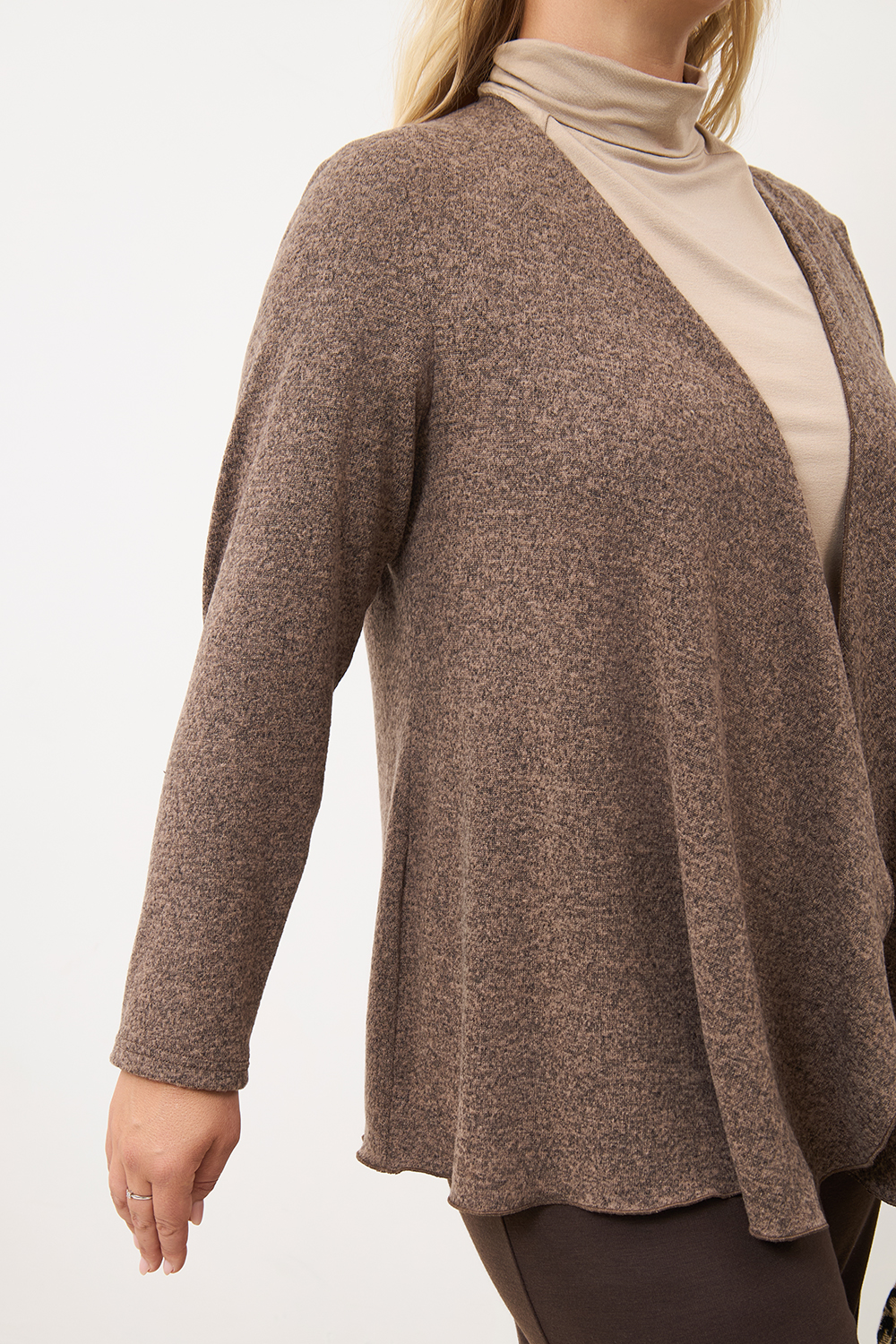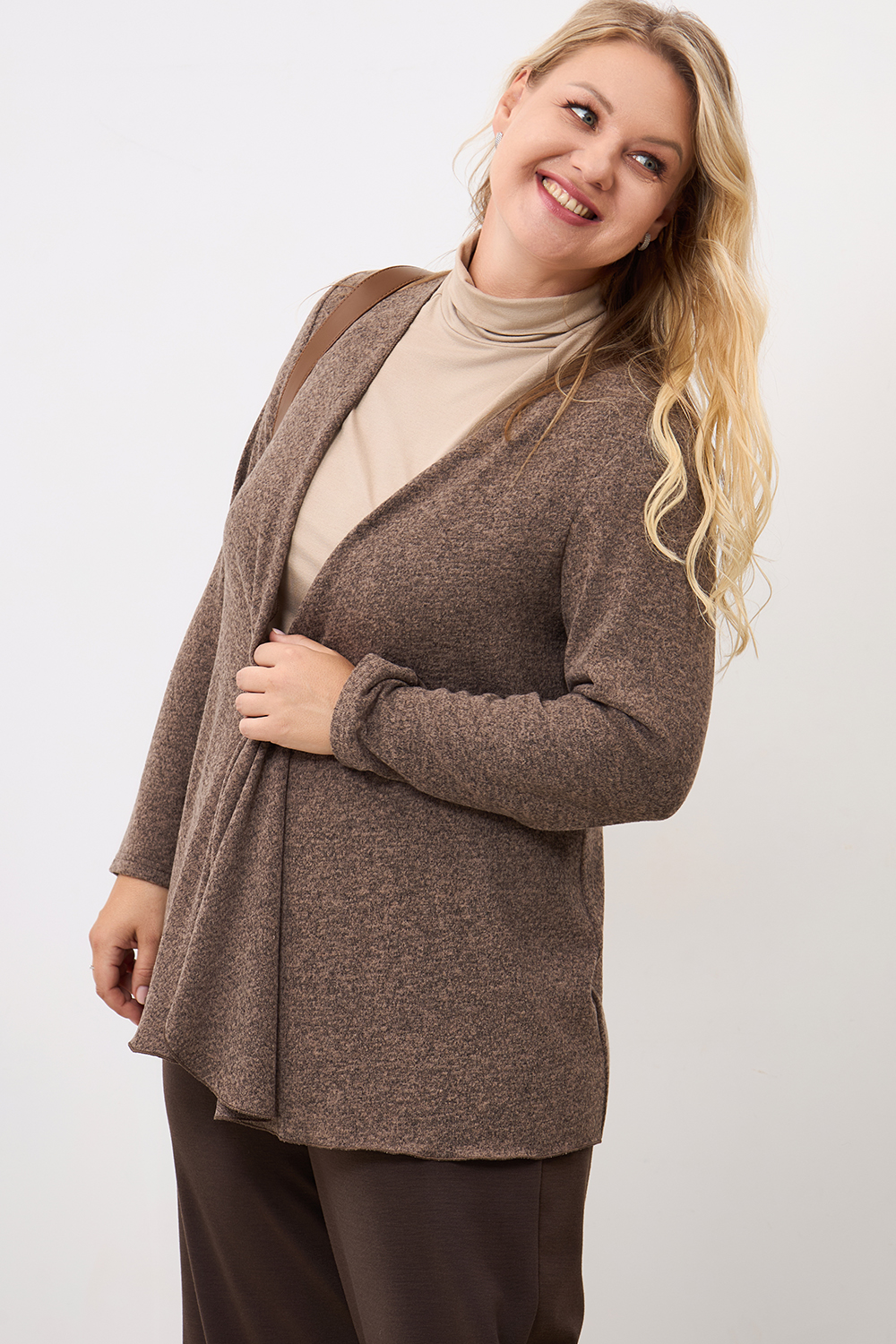 Описание: Кардиган из вязаного трикотажа "кашемир  с драпированными передними деталями без застежки с длинными рукавами.