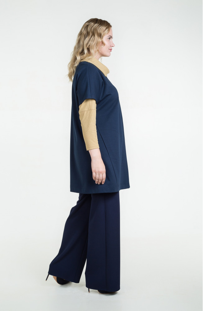 Описание: Жилет из плотного трикотажа джерси свободного силуэта oversize со ппущенным плечом, застежкой на кнопки и с карманами в боковых швах.