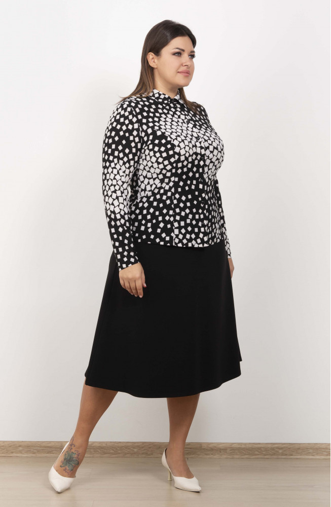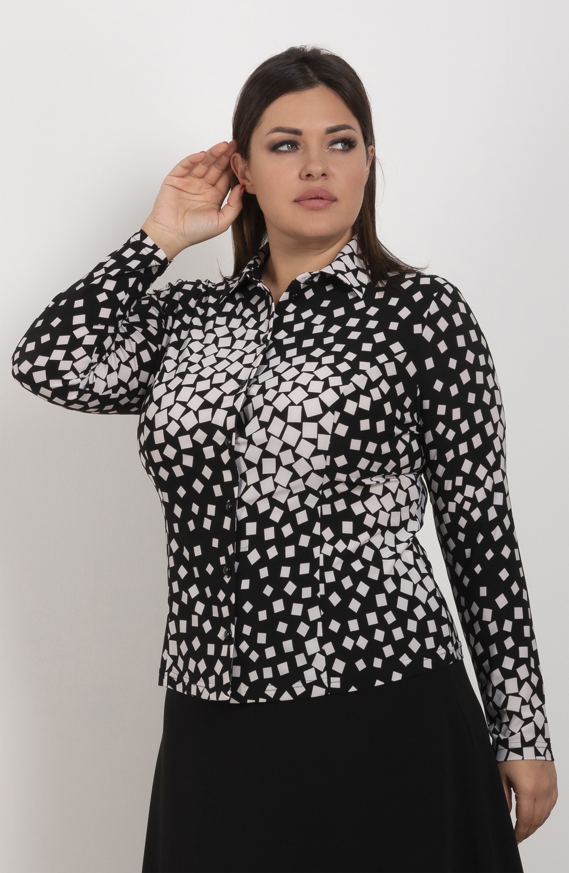 Описание: Блуза-рубашка из тонкого трикотажа приталенного силуэта на пуговицах с класическим воротником.