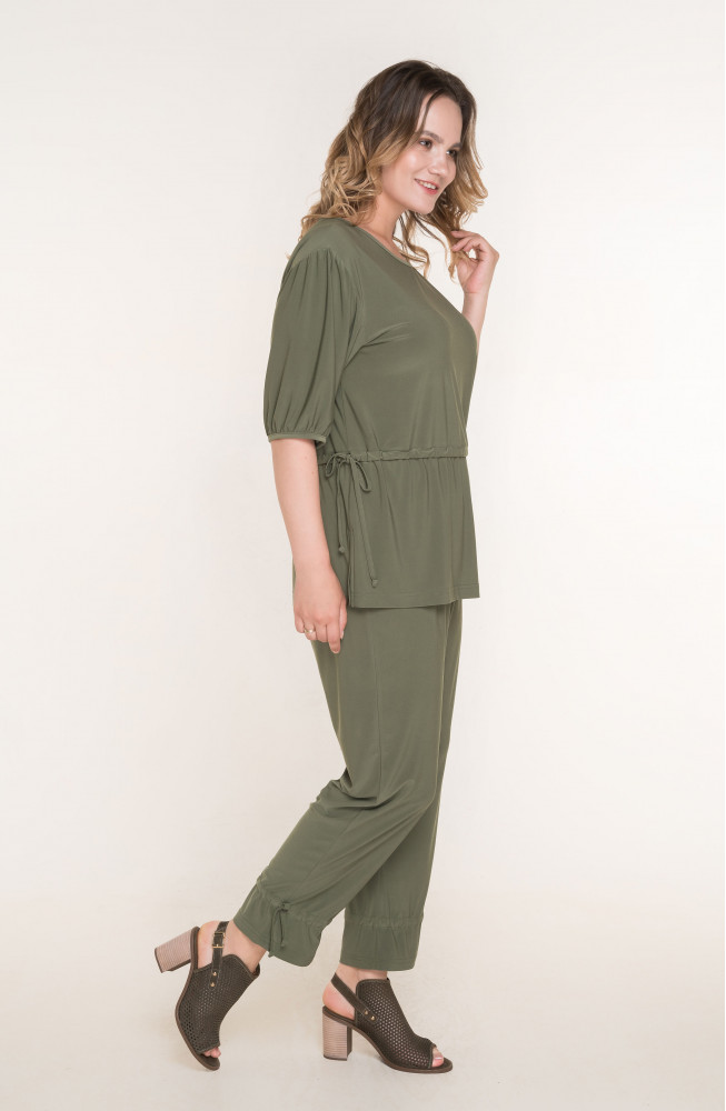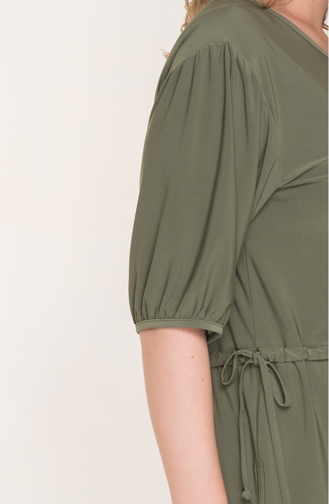 Описание: Джемпер удлиненный из тонкого трикотажа "масло" силуэта oversize с кулиской по талии и обьемными рукавами на спущенном плече.