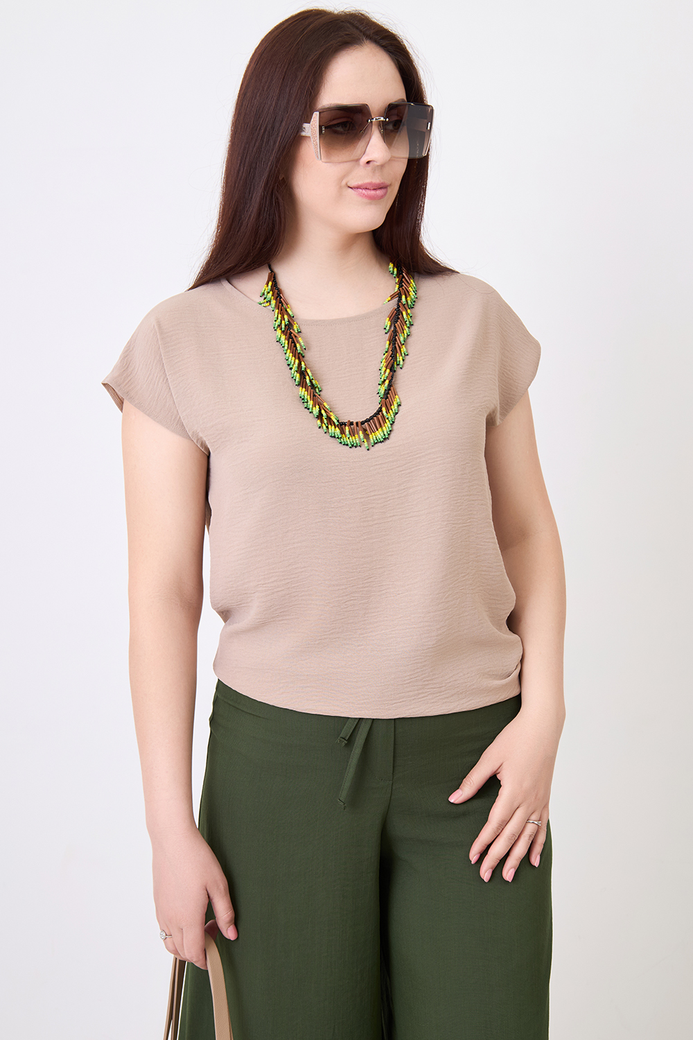 Описание: Футболка женская летняя свободного силуэта "oversize" слегка зауженная по бедрам, выполнена из костюмной ткани с жатым эффектом