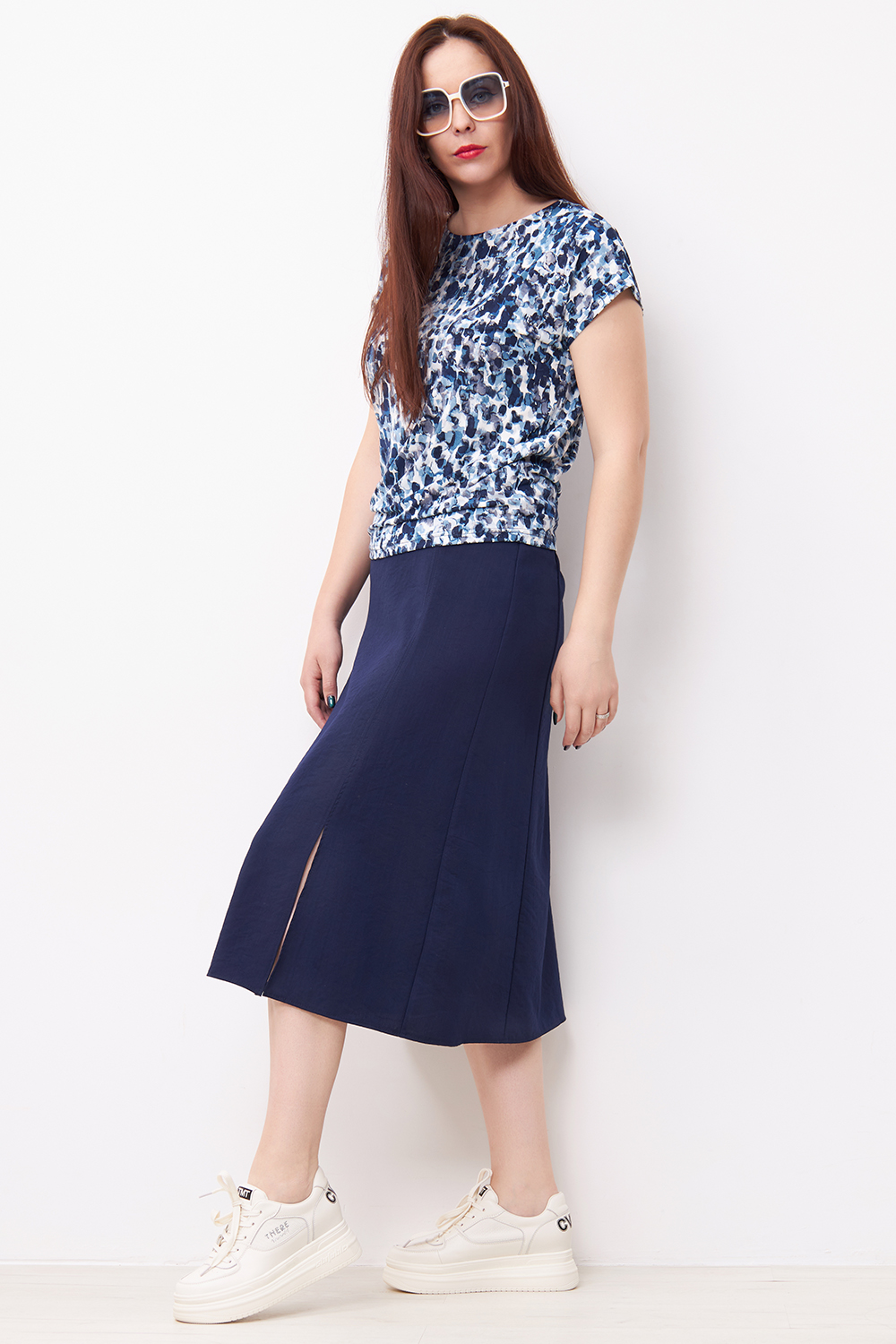 Описание: Блузка женская прямого силуэта слегка зауженная по бедрам, имеет короткие цельнокроенные рукава и округлый вырез горловины. Выполнена из тонкого трикотажа с оригинальным принтом, который подчеркнет индивидуальность и добавит яркости в повседневный образ.