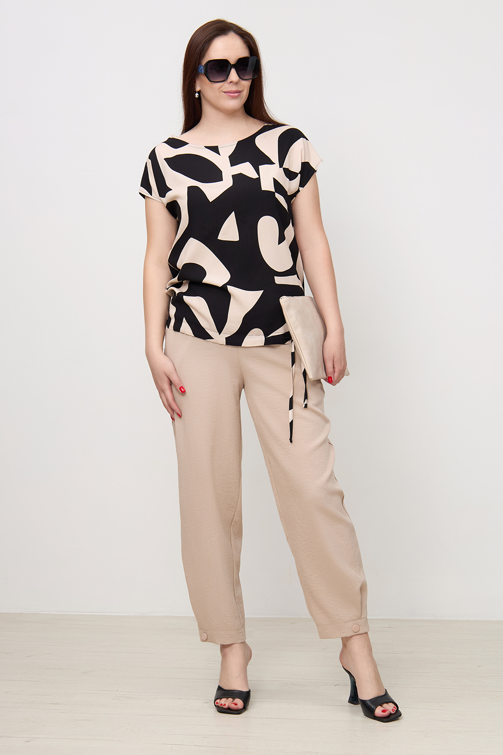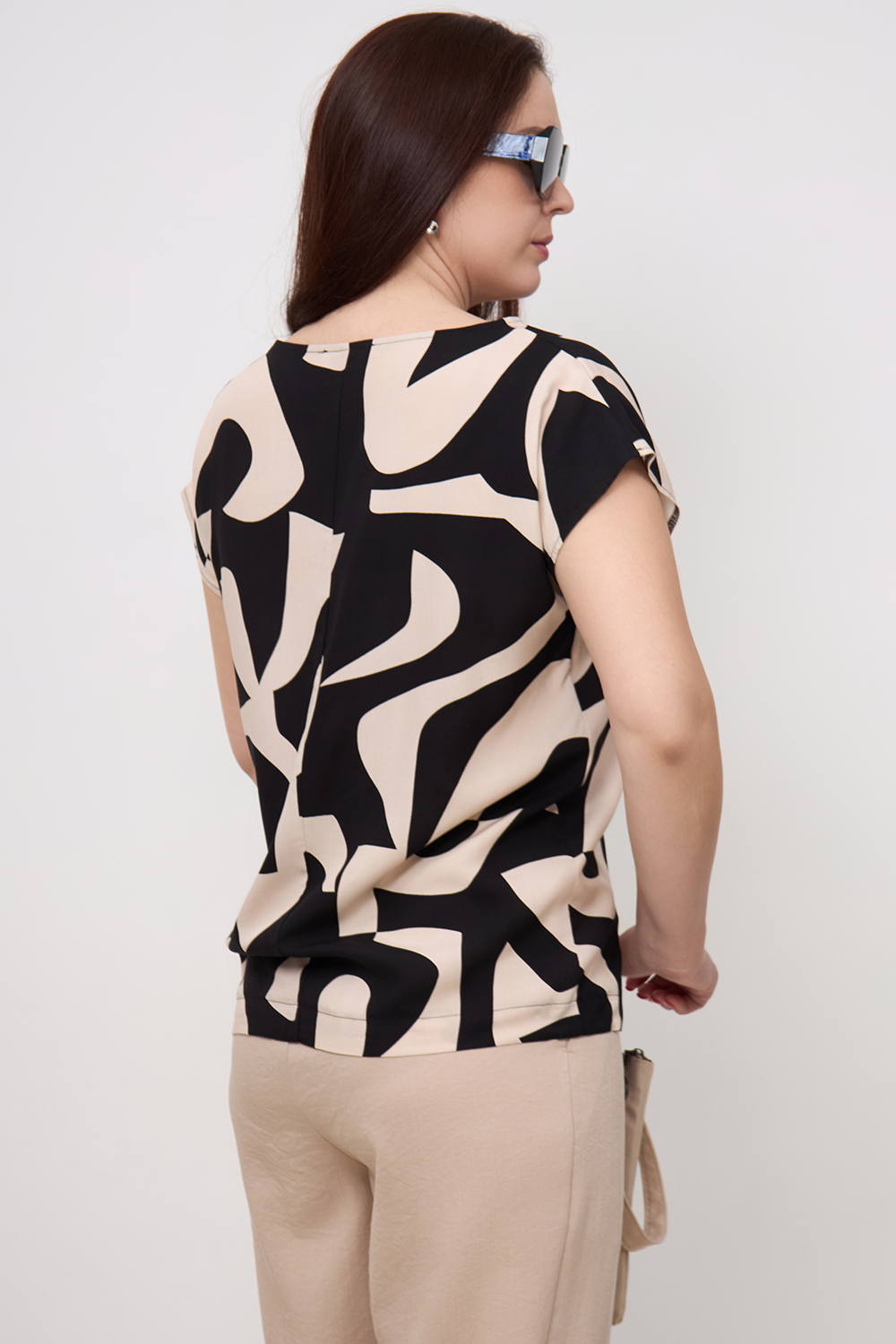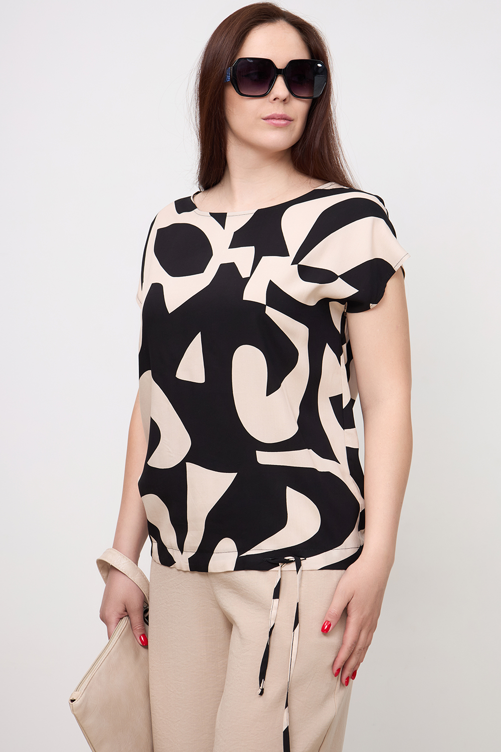 Блузка Незнакомка 03.9507.2361 штапель ((48) 164-96-104, бежево-черный)