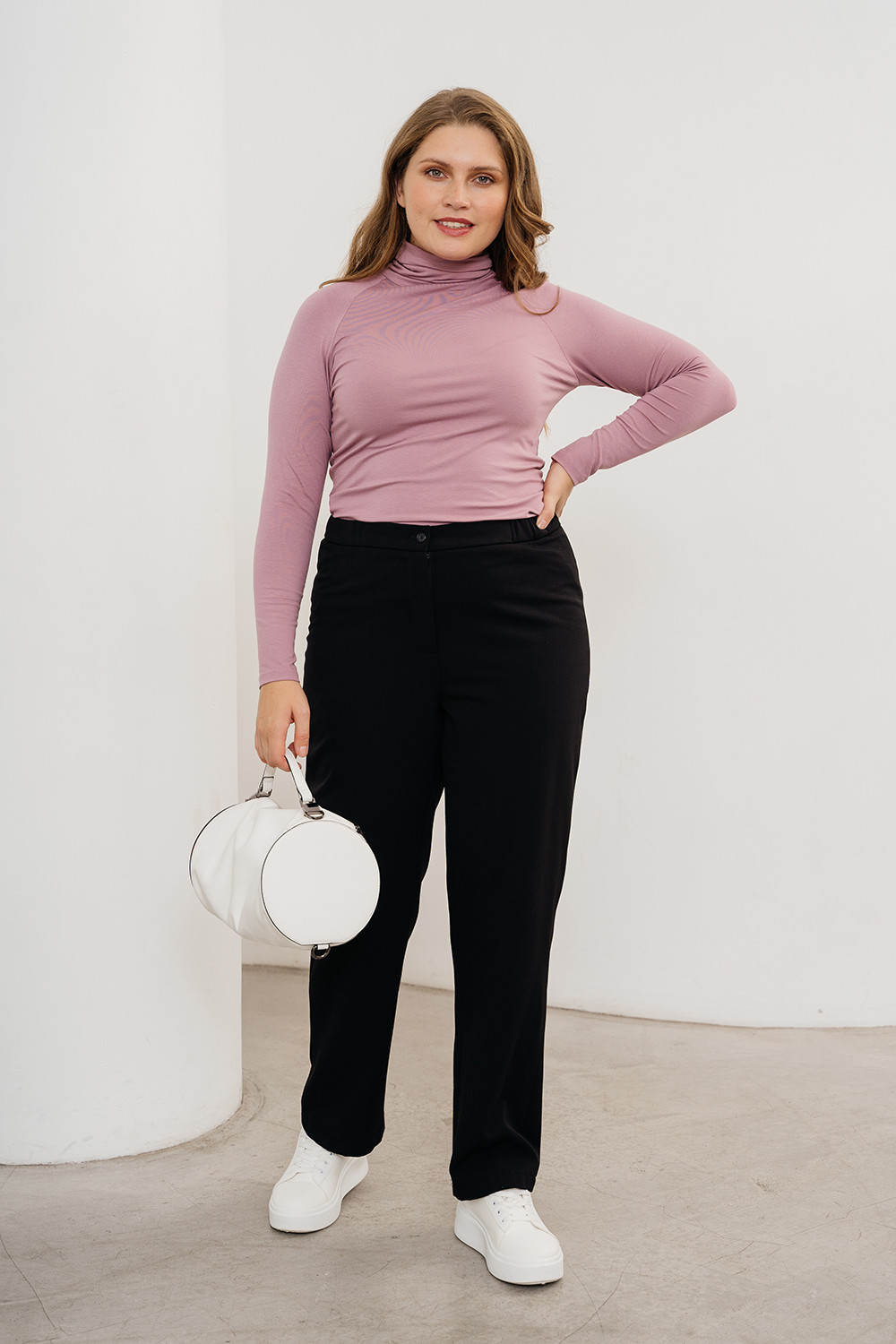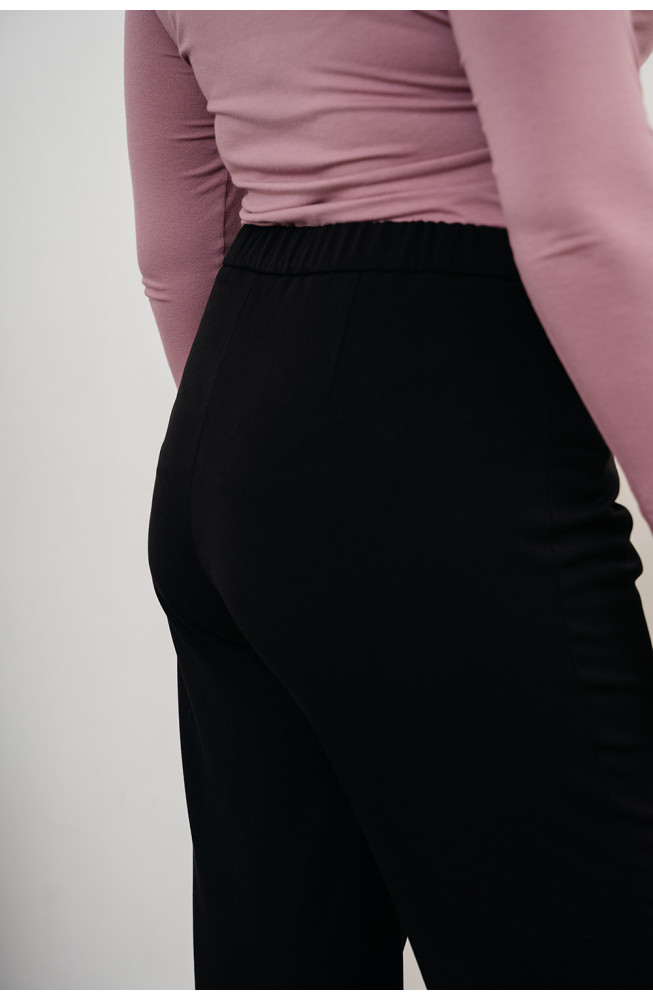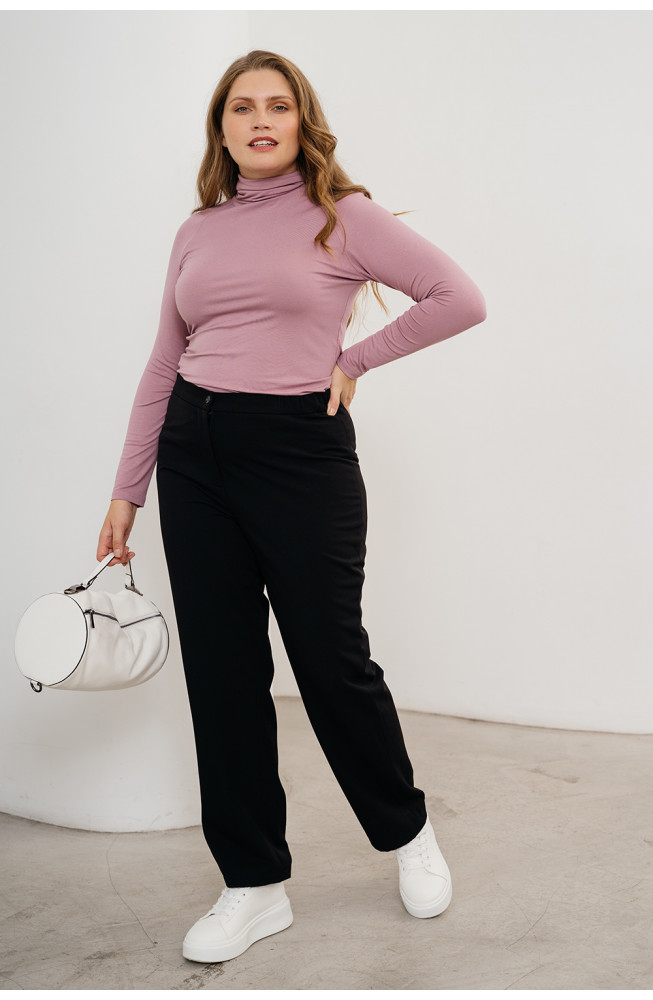 Описание: Брюки из костюмной ткани с начёсом по изнанке чуть зауженного к низу фасона на поясе с застежкой-молнией.