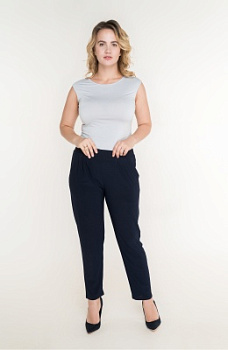 Описание: Брюки из тонкого трикотажа зауженные к низу с защипами от пояса, без застежки на резинке по талии с карманами по бокам.