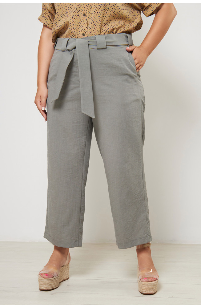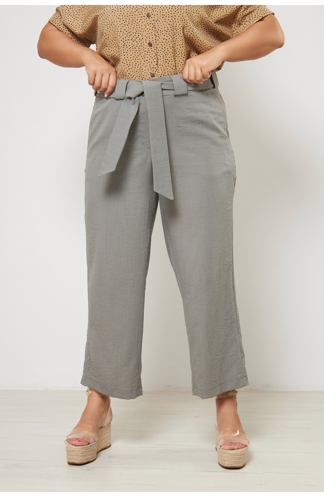 Описание: Брюки из плотной костюмной ткани с жатым эффектом, зауженные к низу, по бокам передней половинки брюк лампасы из основной ткани, в швах лампасов карманы,застежка-молния,на поясе 2 пуговицы, по спинке пояс на резинке, на поясе широкие шлёвки, в комплекте пояс из основной ткани.