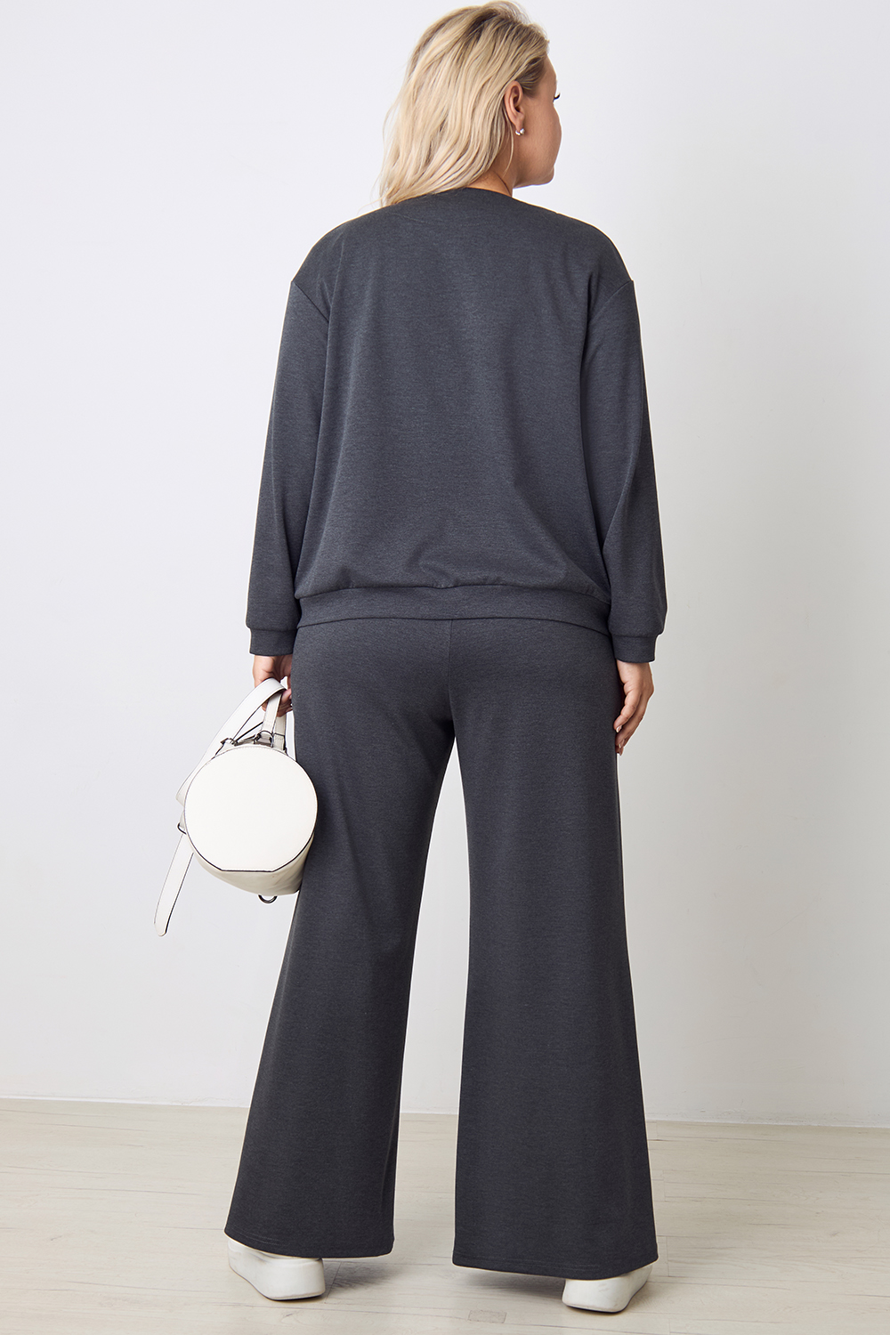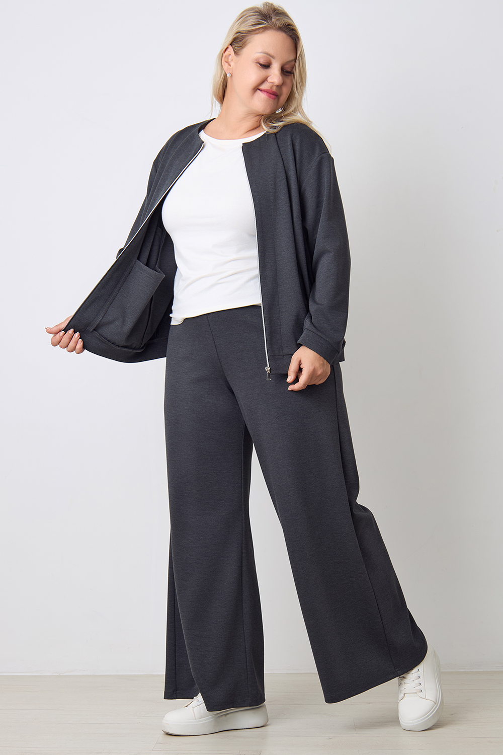 Свободные брюки клеш большого размера из плотного трикотажа качественно сшиты, неприхотливы в уходе. После стирки сохраняют форму.