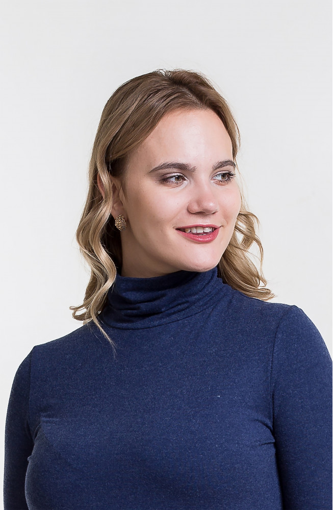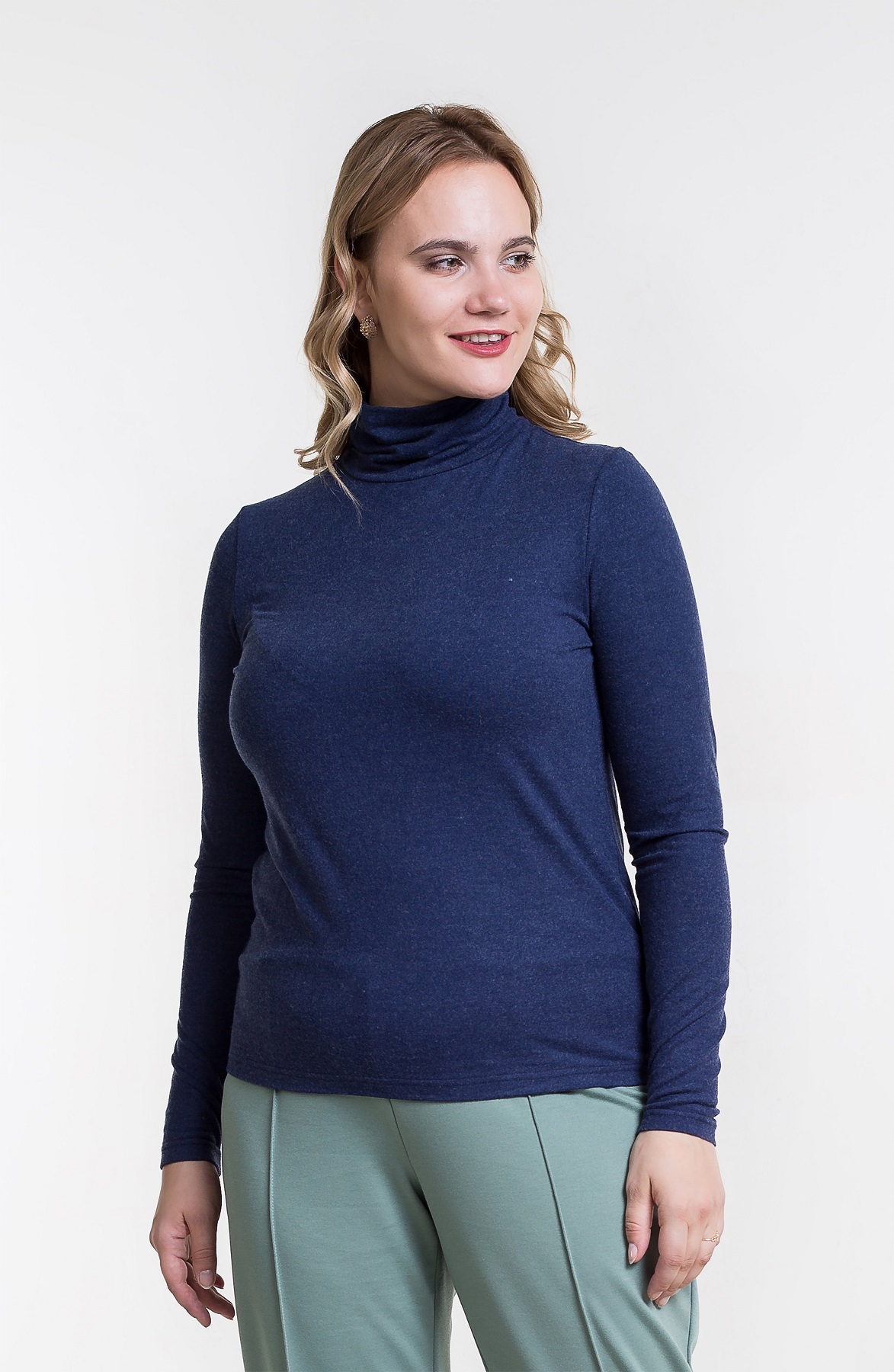Описание: Джемпер-бадлон приталенного силуэта из мягкого вискозного трикотажа средней плотности с длинными рукавами и воротником-стойкой.