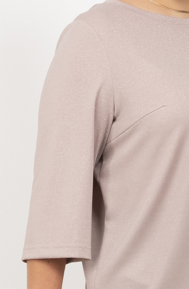 Описание: Туника женская, туника большая, туника нарядная, туника трикотажная, туника с рукавами, с люрексом, с округлой линией горловины.