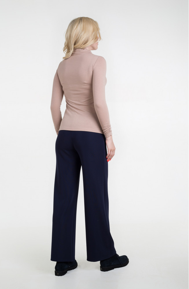 Описание: Джемпер из тонкого вязаного трикотажа приталенного силуэта с цельнокроенным воротником-стойкой и сборкой по низу рукавов.