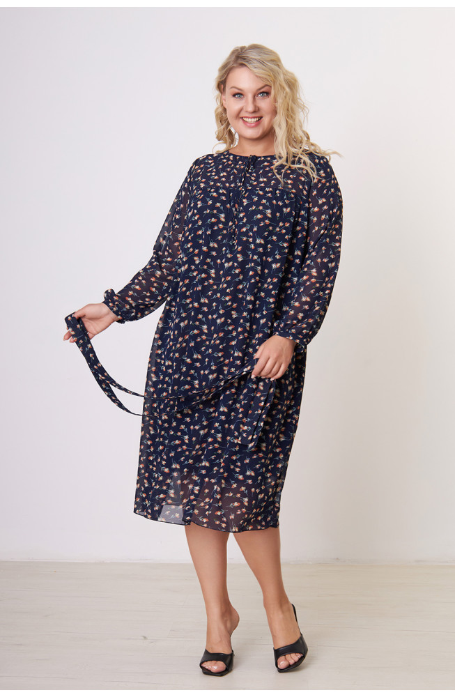 Описание: Воздушное платье на кокетке, выполнено из шифона с подкладкой-сеткой. Ткань легкая, струящиеся, мягко ниспадает по фигуре, тем самым маскирует лишние объемы.