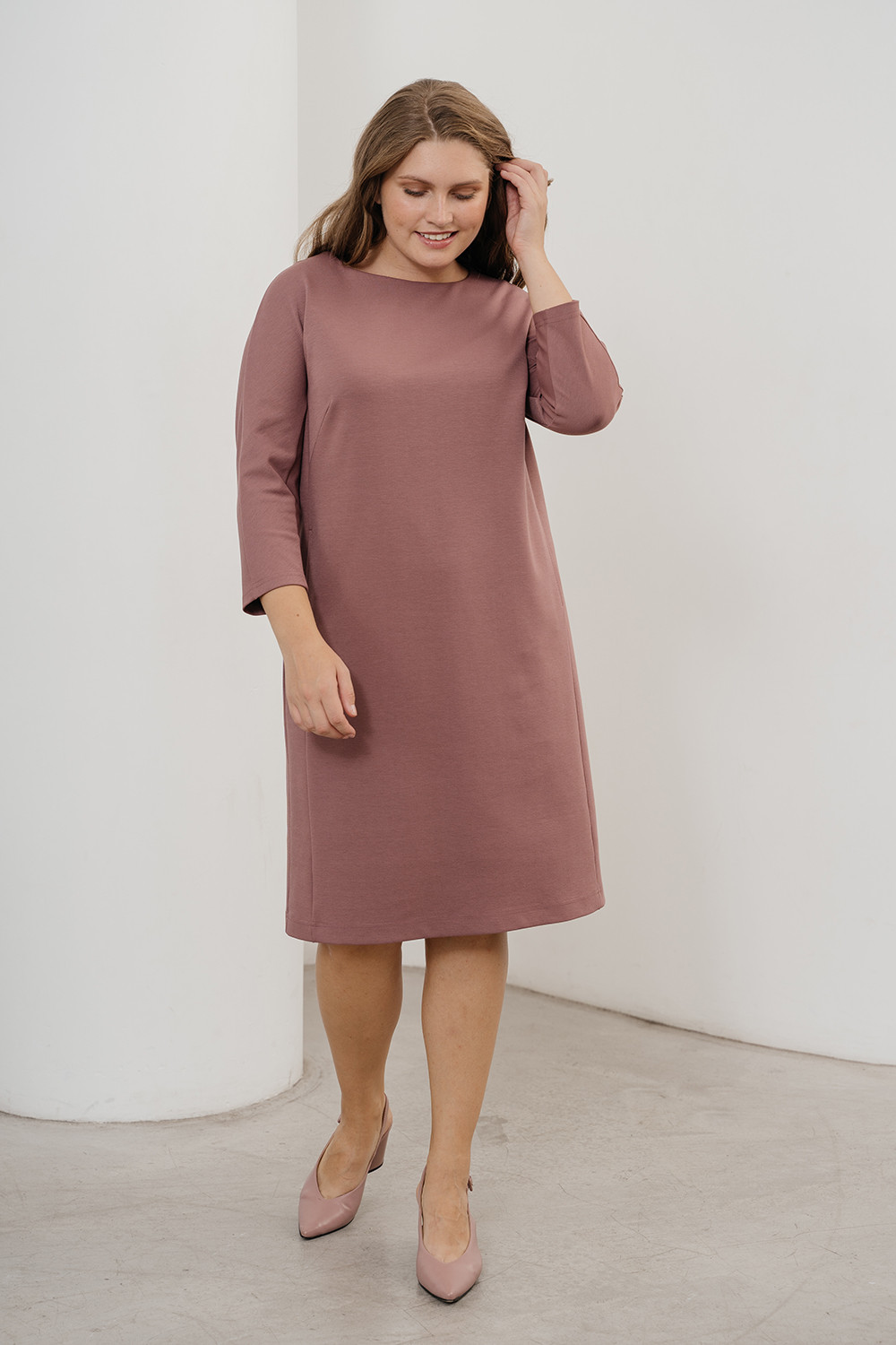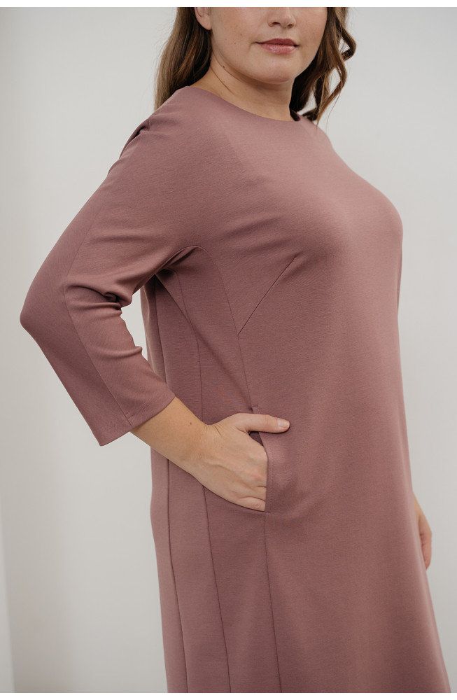 Описание: Платье из плотного трикотажа джерси прямого силуэта с цельнокроенными рукавами 3/4 и карманами по бокам.