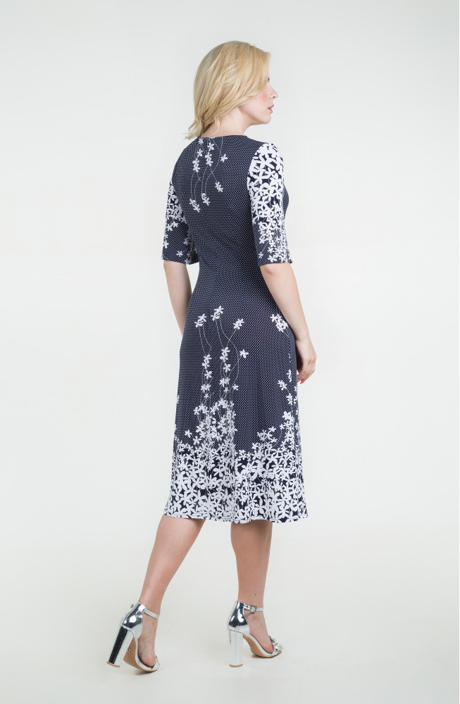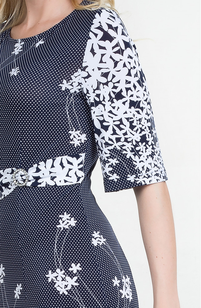 Описание: Платье из тонкого трикотажа "масло" приталенного силуэта расклешенное от бедра с расширенными рукавами до локтя и с поямом по талии с декоративной пряжкой.