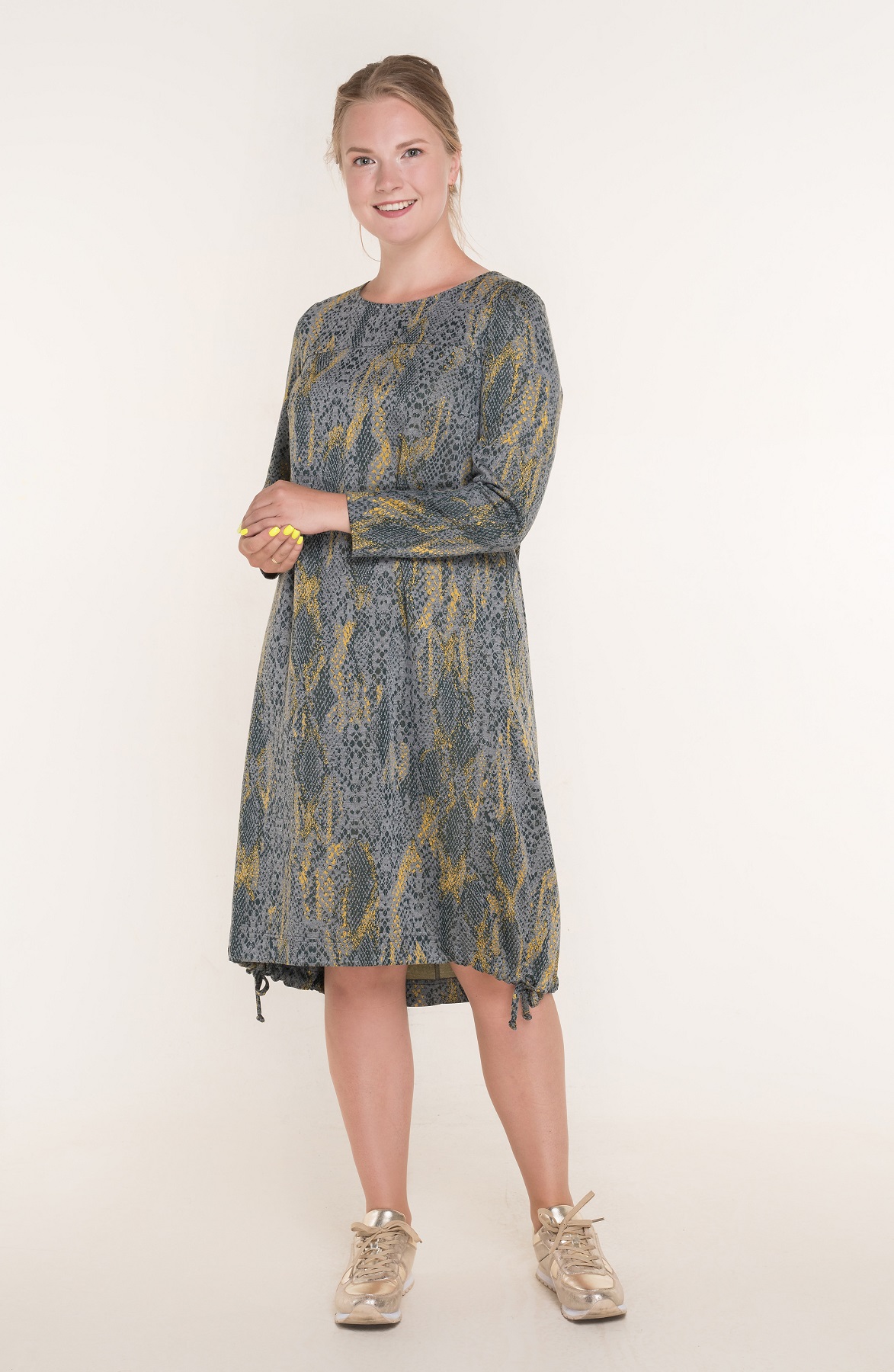 Описание: Платье из плотного трикотажа силуэта "баллон" с округлым вырезом горловины, кокеткой над линией груди, с длинными рукавами, диагональными швами от бедра до низа с кулисками по низу.