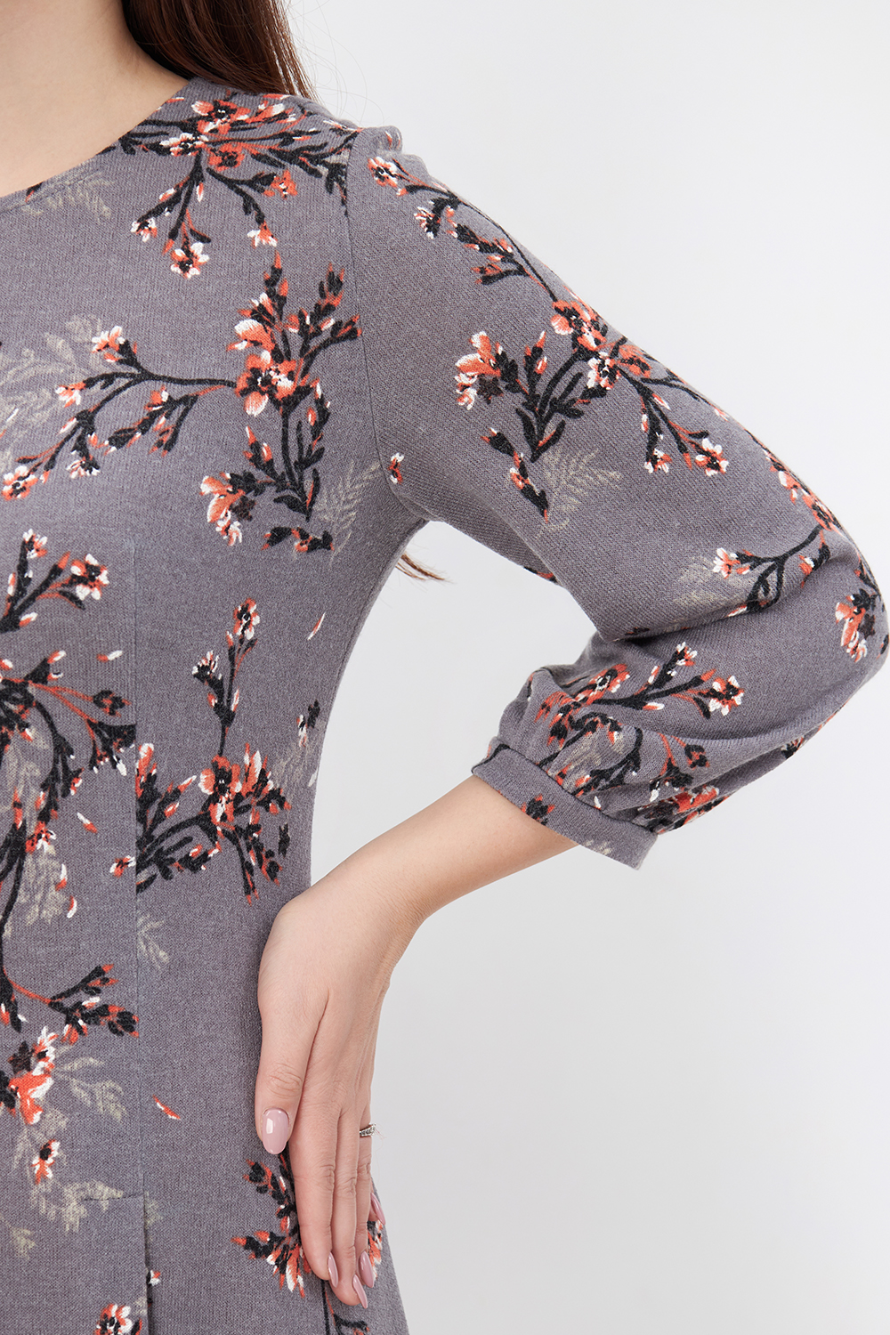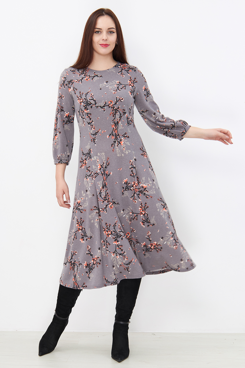 Платье Незнакомка 00.8482.2803 трикотаж-ангора ((44) 164-88-96, цветы на сером)