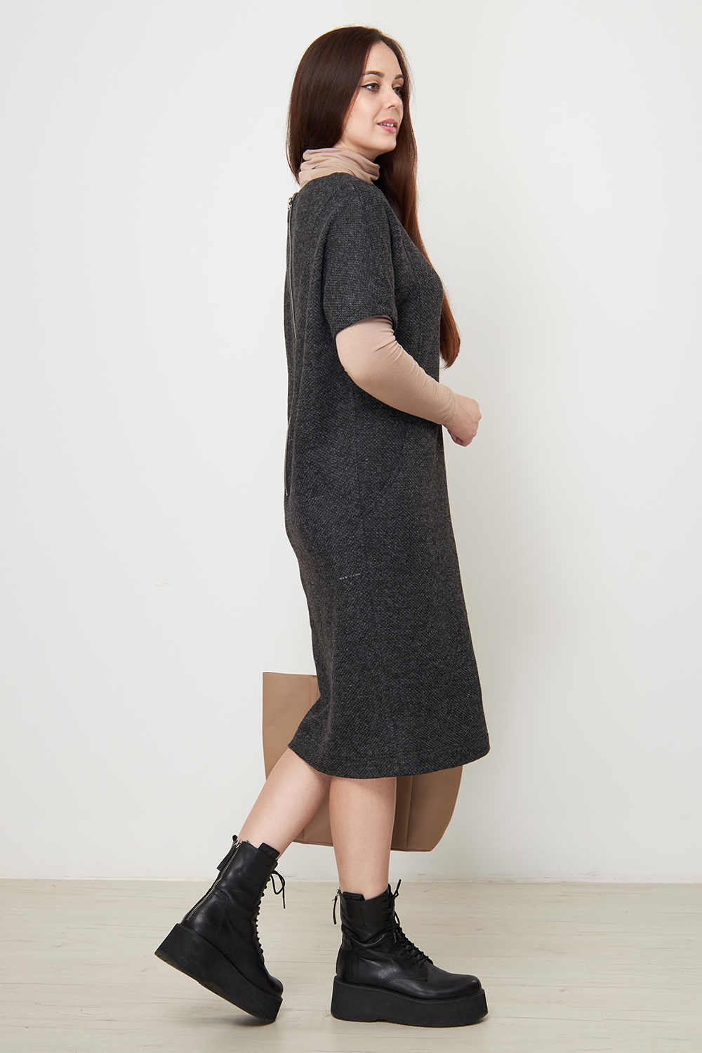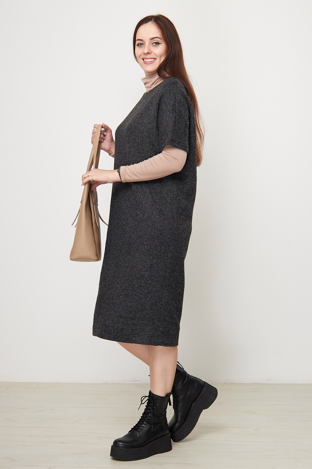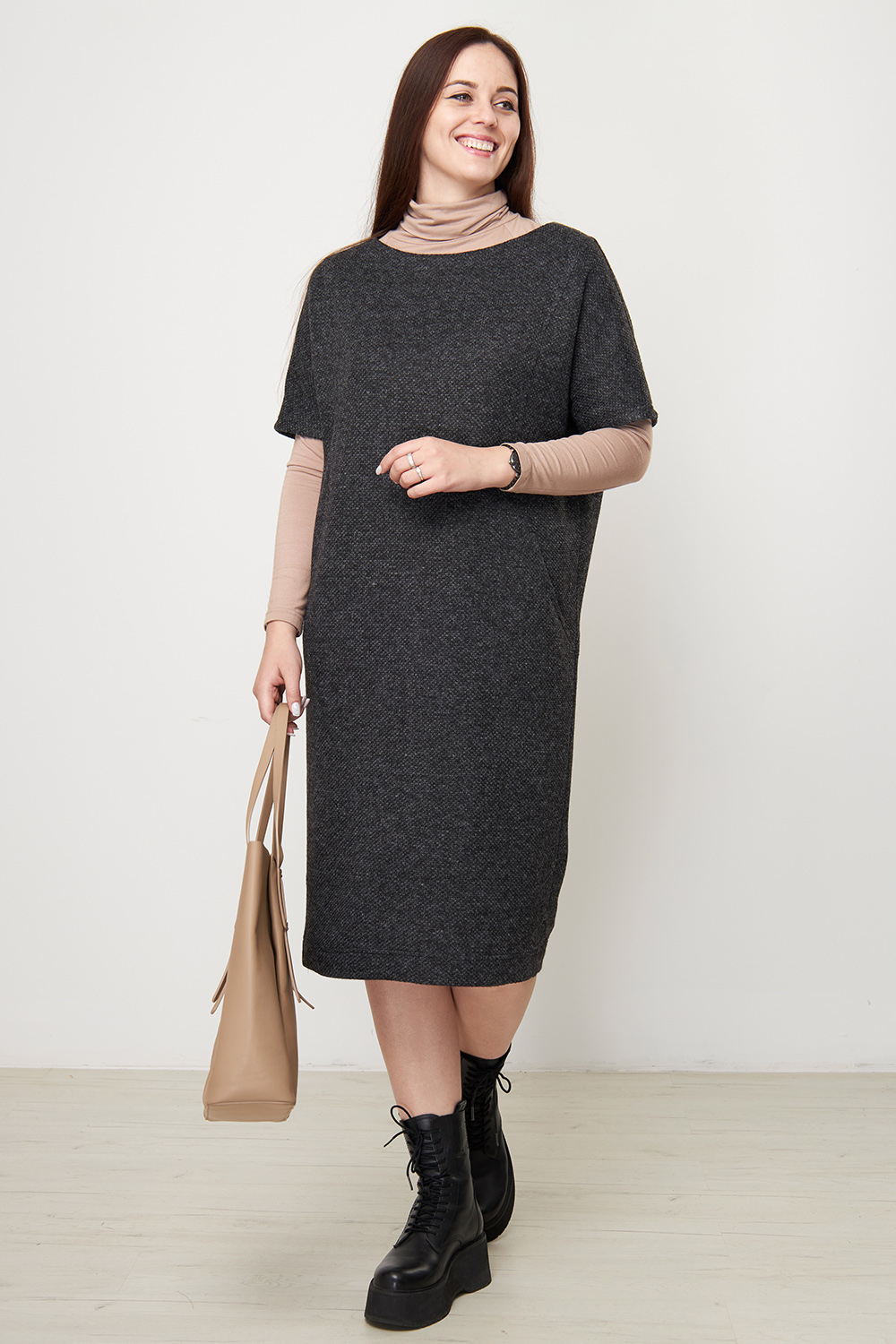 Описание: Сарафан из плотного трикотажа свободного силуэта oversize со спущенным плечом и карманами рельефных швах. По спинке сарафан украшает длинная металлическая молния. Застежка-молния ложная - не расстегивается.