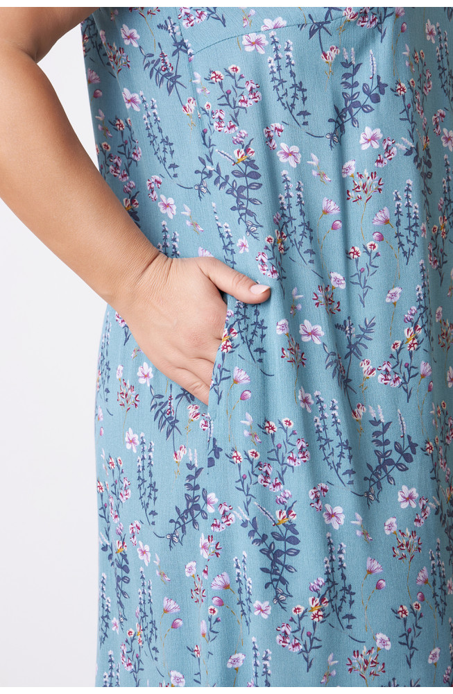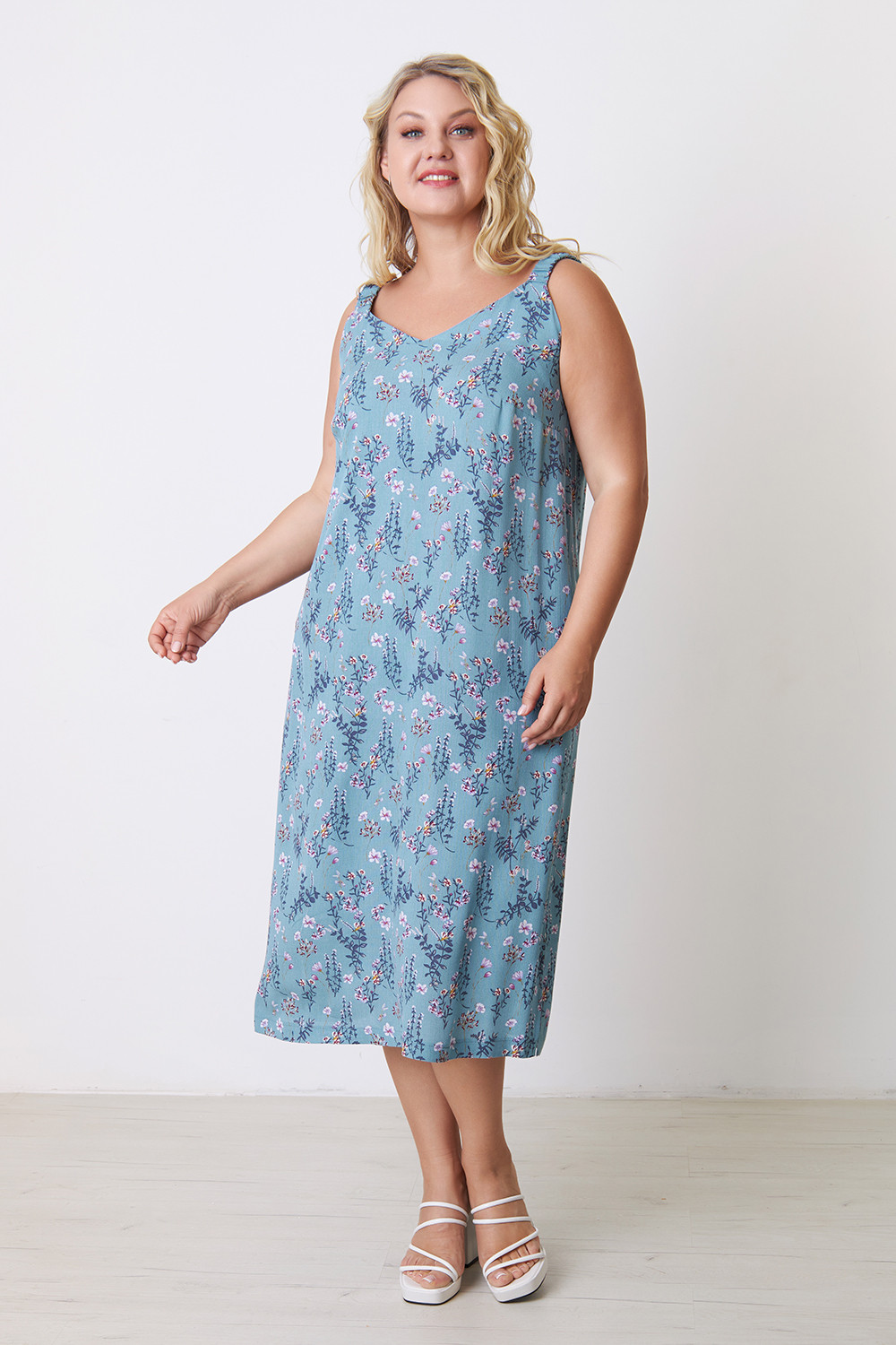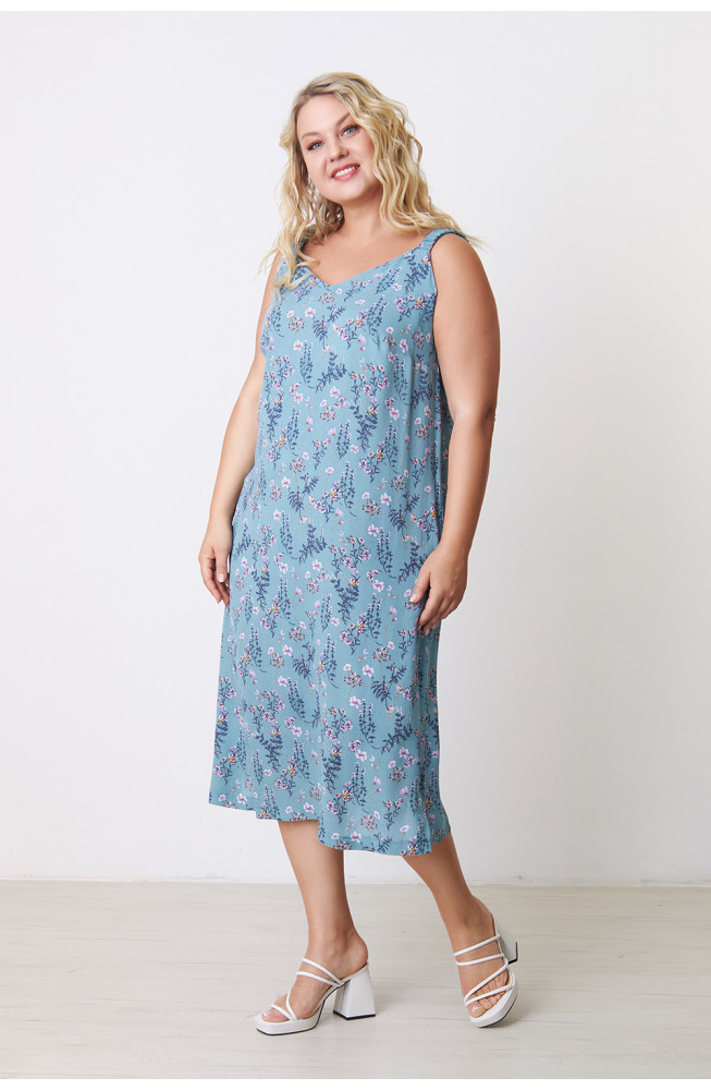 Описание: Сарафан из вискозной ткани "марлевка" полуприлегающего А-образного силуэта. Полочка обработана с нагрудными вытачками, в боковых швах карманы. В нижних частях боковых швов - разрезы. Притачные бретели обработаны с резинкой внутри