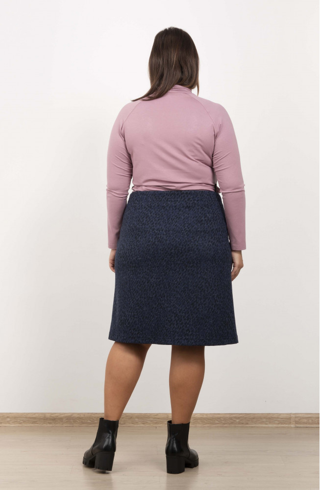 Описание: Юбка-клёш из плотного трикотажа на обтачке по талии с молнией сбоку и длиной ниже колена.