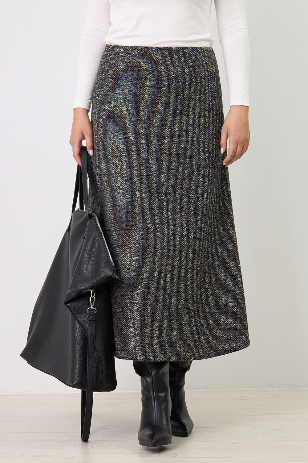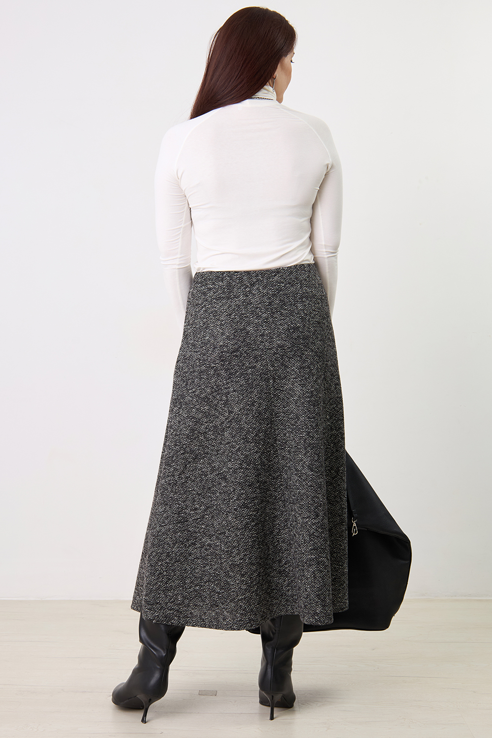 Описание: Юбка А-образного силуэта из фактурного трикотажа "меланж" с резинкой на талии.