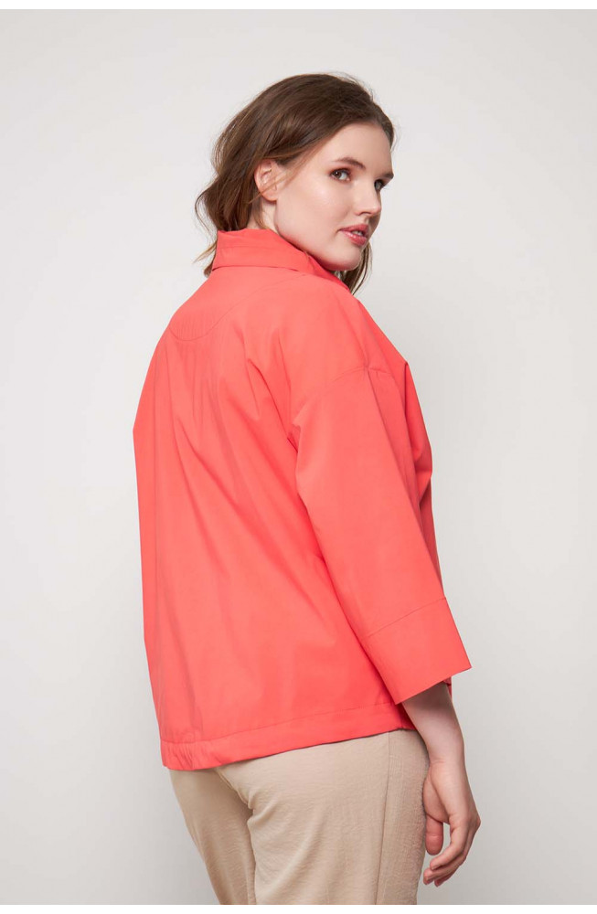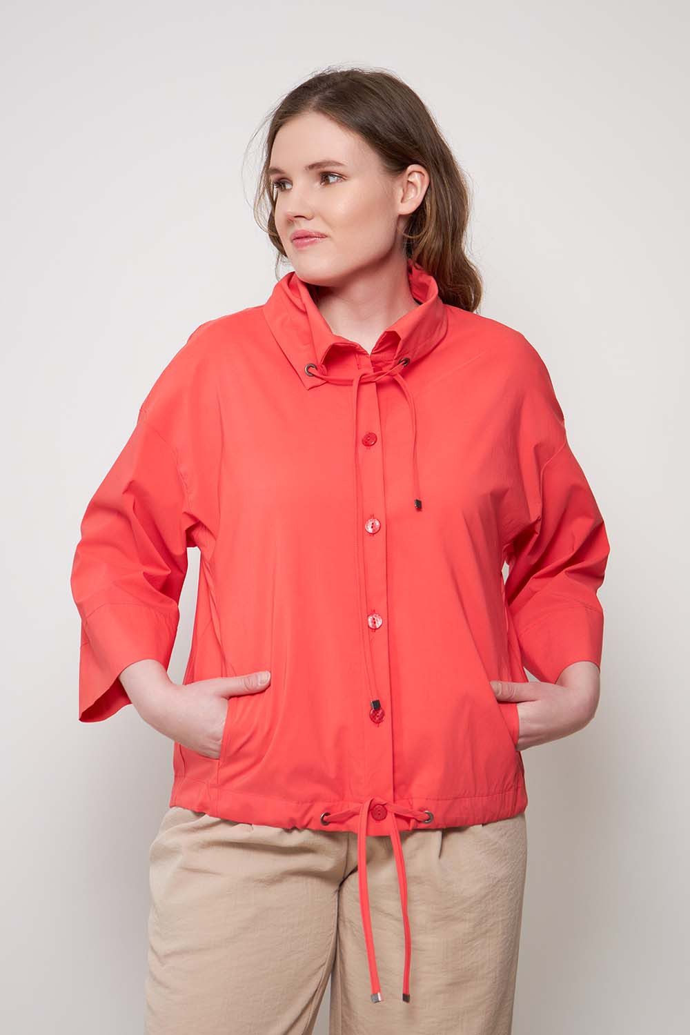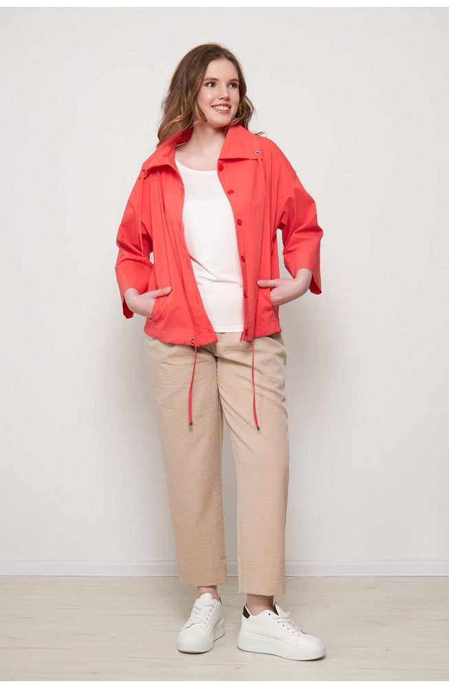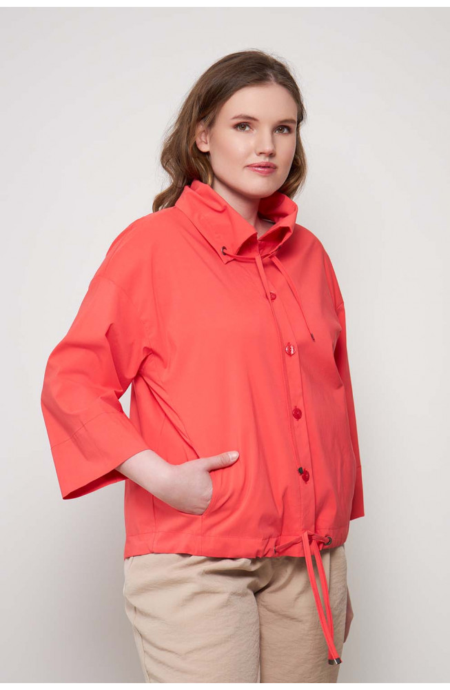 Описание: Жакет из хлопковой ткани-стрейч "бенгалин" силуэта oversize на застежке на пуговицы с воротником с кулисой со шнурком, с кулисой по низу, широкими рукавами длиной 7/8 на спущенном плече и с карманами в рельефных швах.