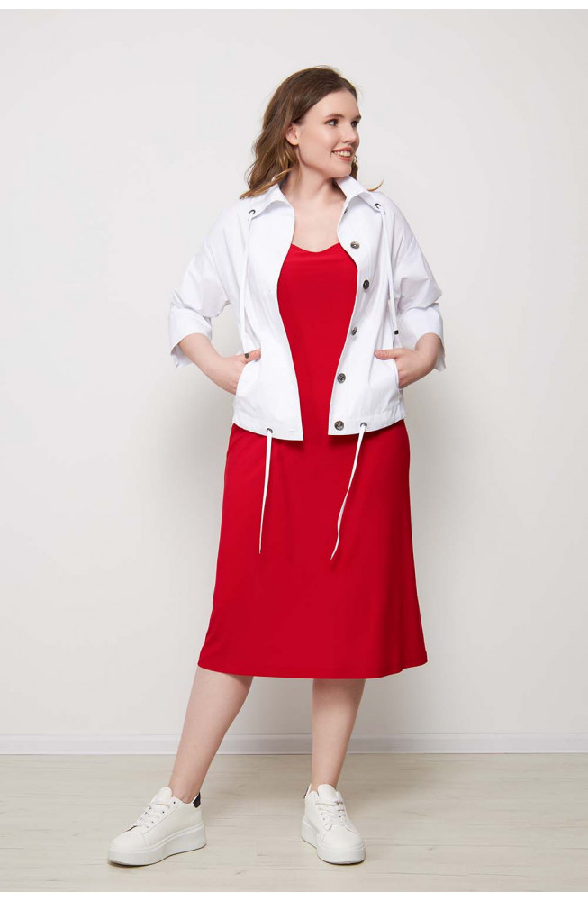Описание: Жакет из хлопковой ткани-стрейч "бенгалин" силуэта oversize на застежке на пуговицы с воротником с кулисой со шнурком, с кулисой по низу, широкими рукавами длиной 7/8 на спущенном плече и с карманами в рельефных швах.