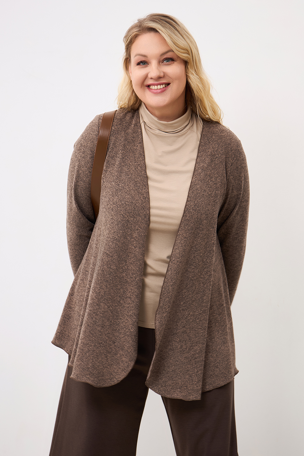 Описание: Кардиган из вязаного трикотажа "кашемир  с драпированными передними деталями без застежки с длинными рукавами.