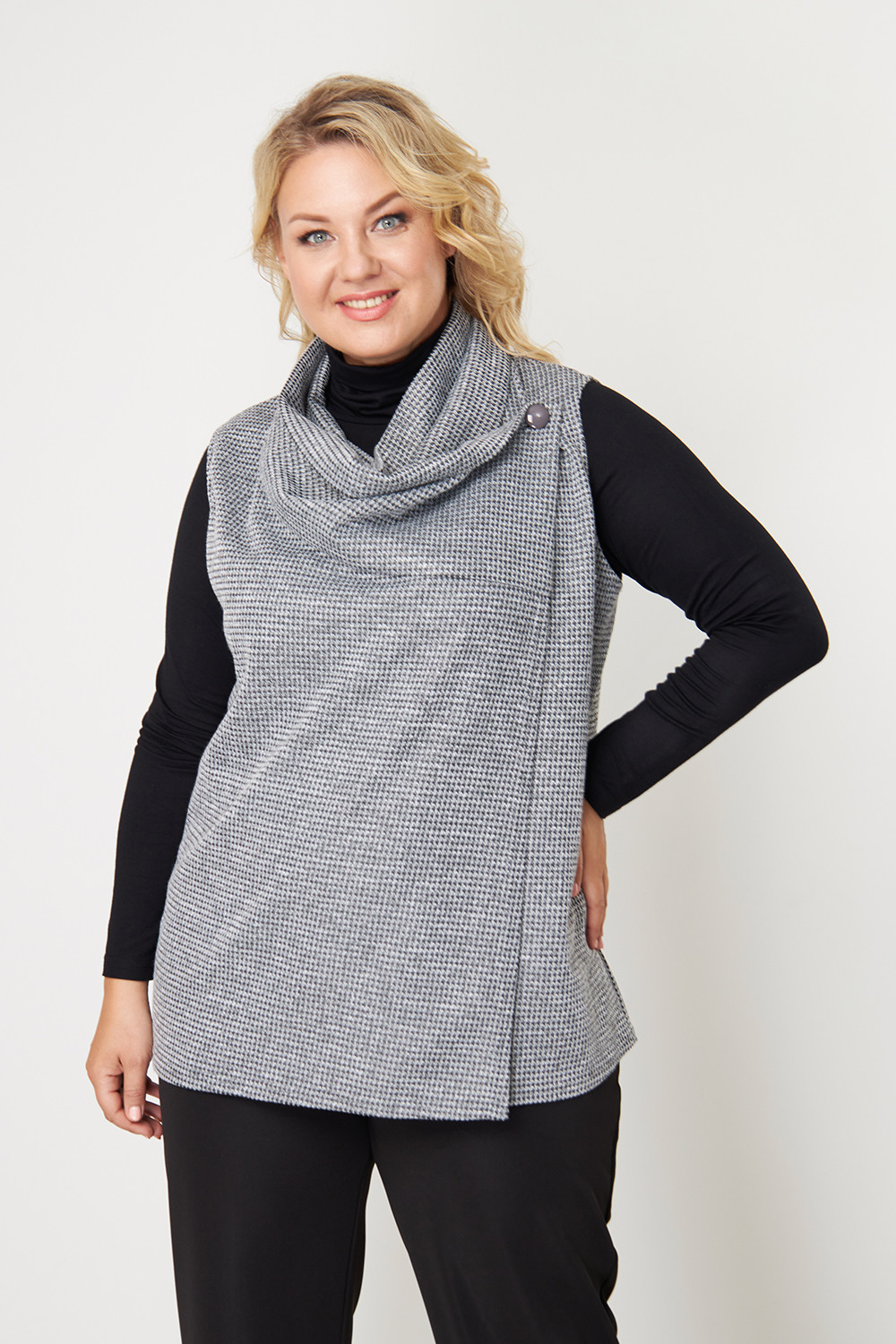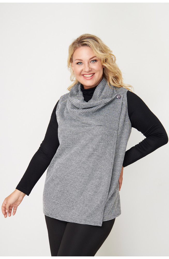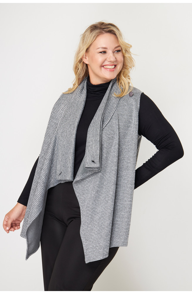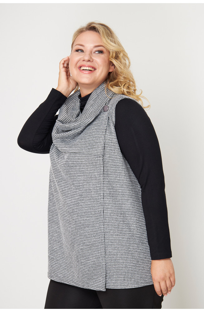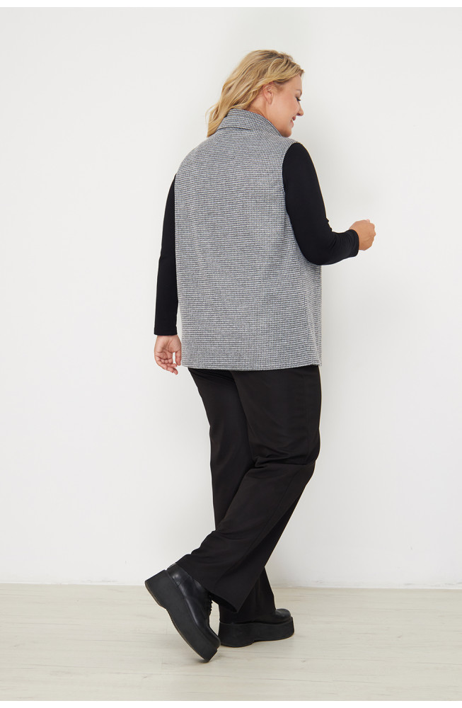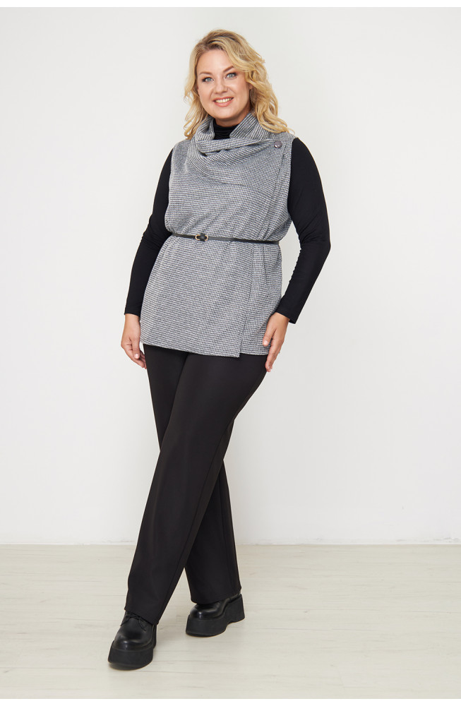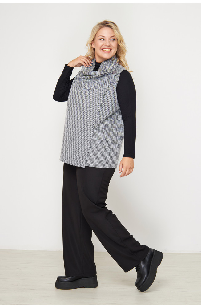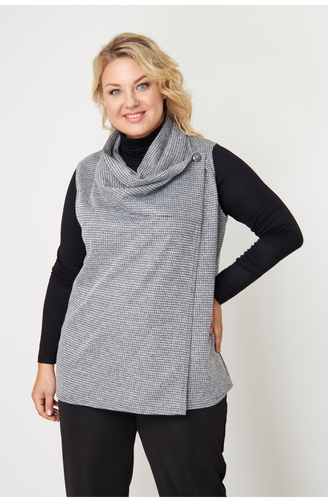 Описание: Жилет женский свободного силуэта выполнен из трикотажа "меланж", имеет бугристую фактуру, но при этом очень мягкий и комфортный в носке.