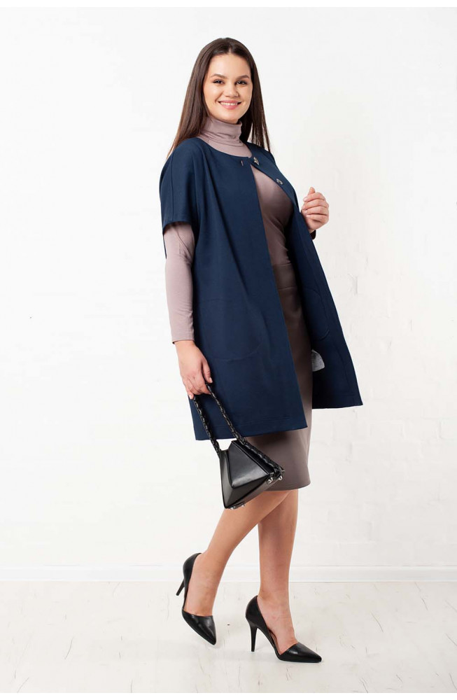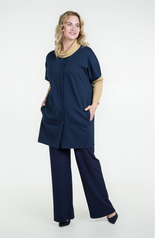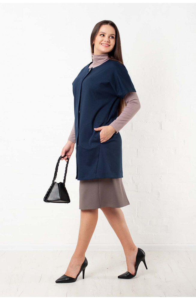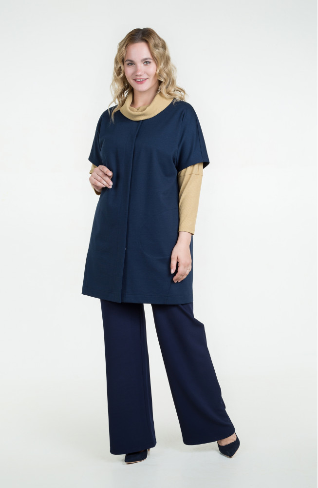 Описание: Жилет из плотного трикотажа джерси свободного силуэта oversize со ппущенным плечом, застежкой на кнопки и с карманами в боковых швах.